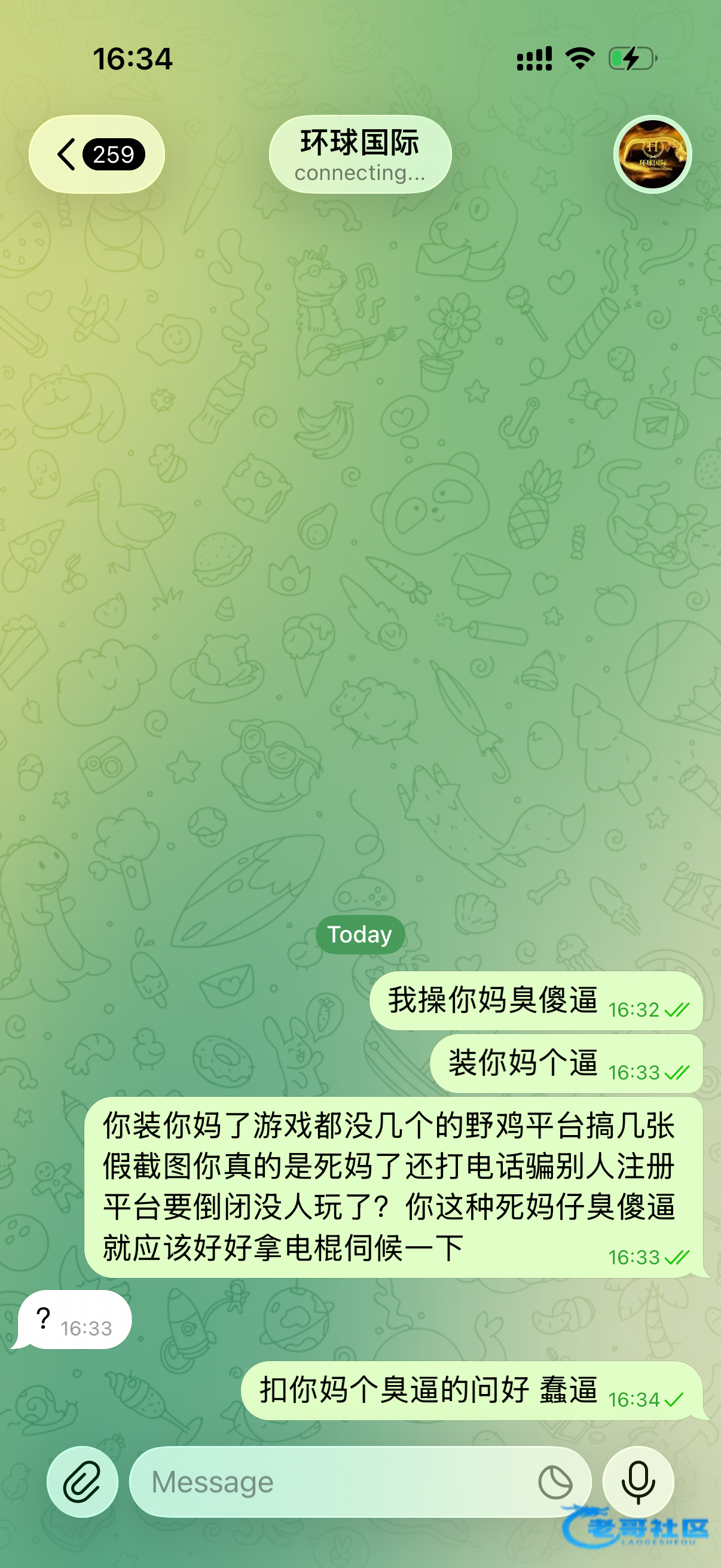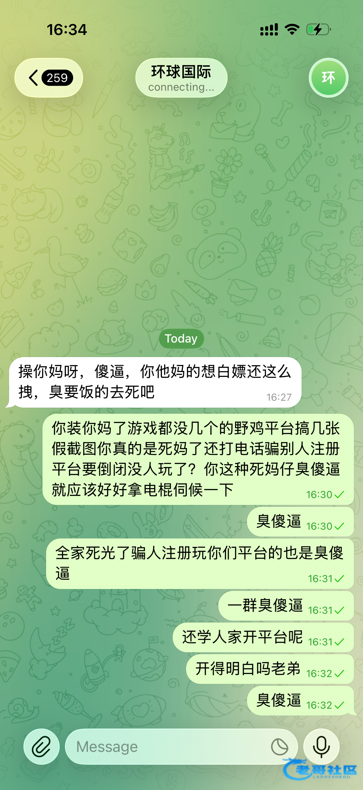 本来输钱火气就大、傻逼环球国际打电话骗让加飞机领彩金 加了之后又跟我讲没有纯纯野鸡平台 游戏也才有几个还十四年老台...