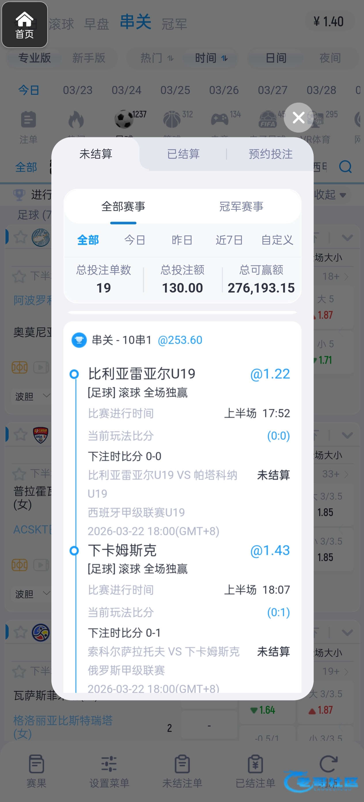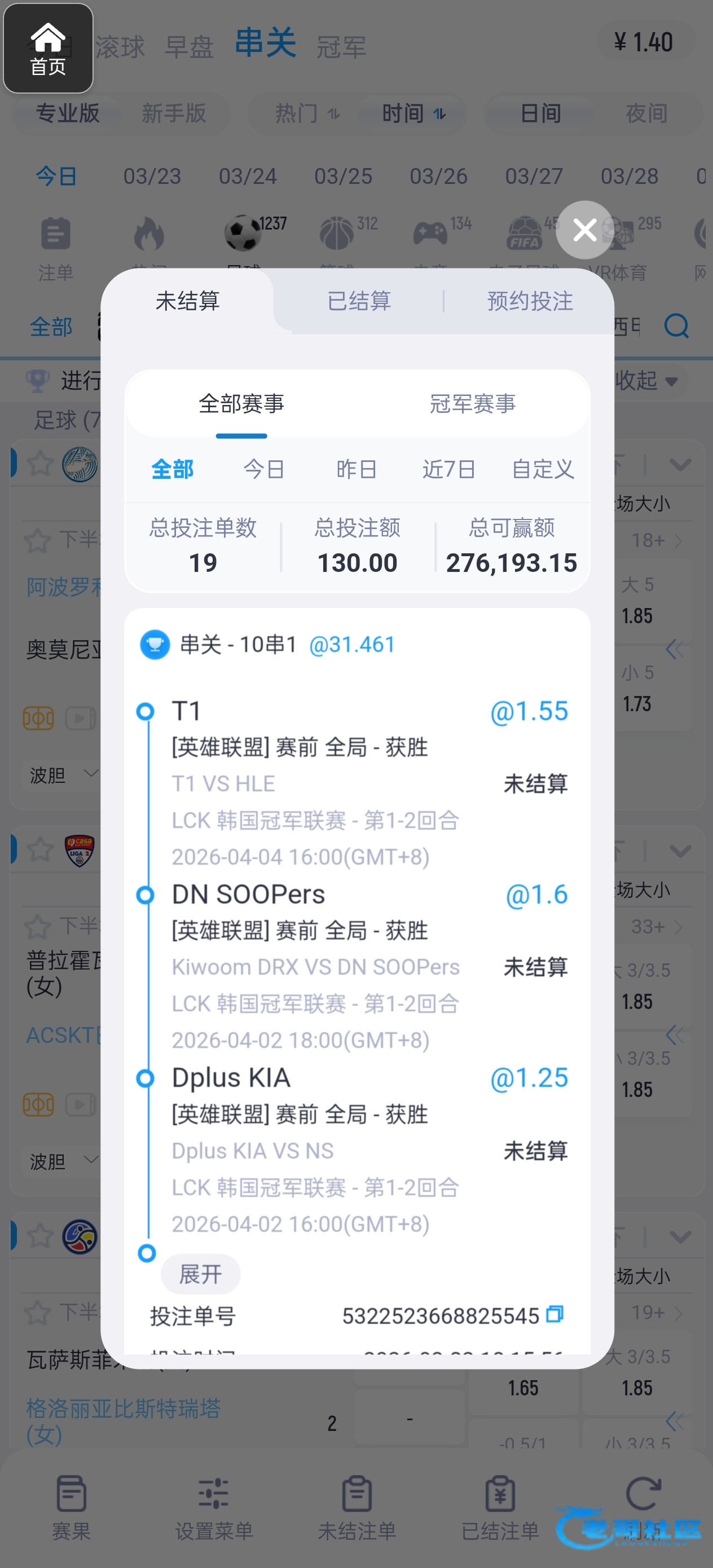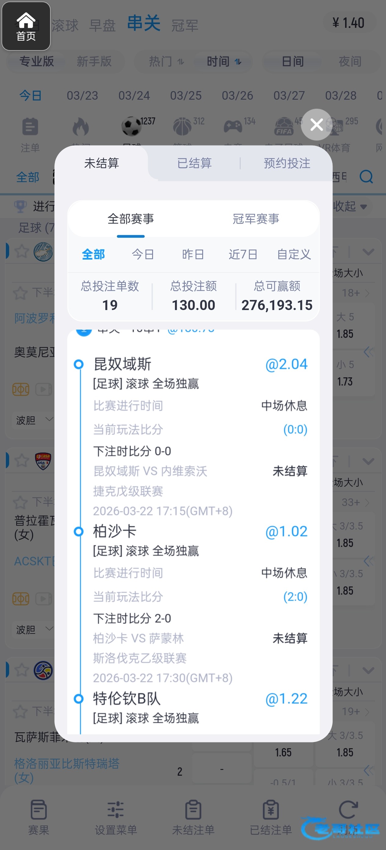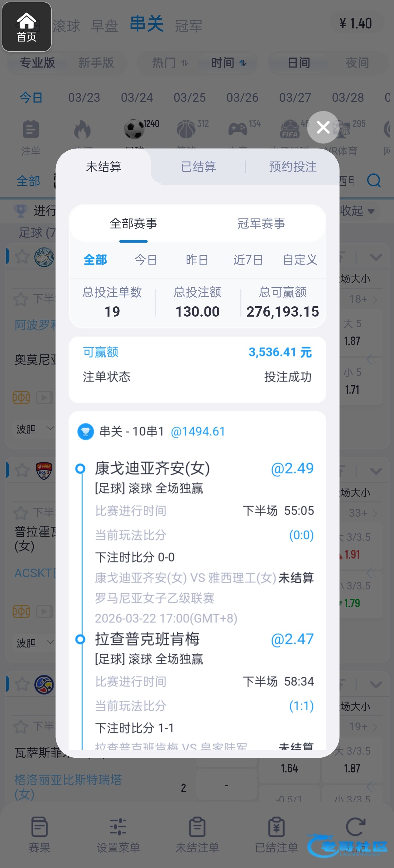 前面摁的澳洲联赛4串1就挂在最后一场,先闭着眼睛摁个5串1,晚上再补个五大联赛