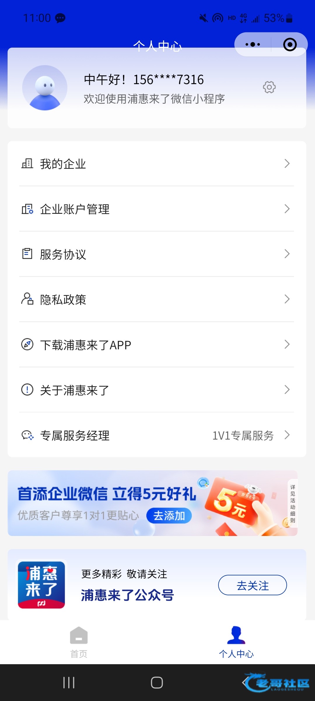 搜索普惠来了,进入小程序,个人中心进去,下面可以看到入口