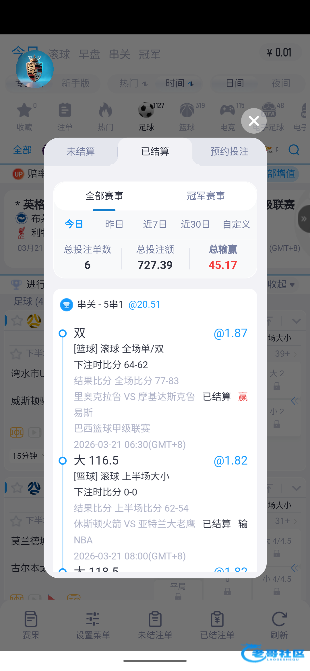 昨天五大联赛串关