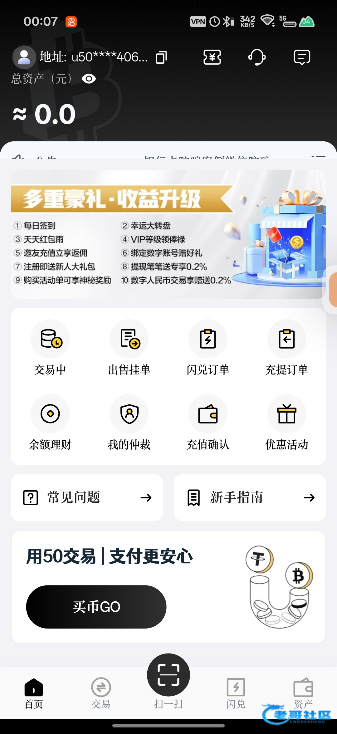 有老哥知道50钱包那里可以充买了100币求