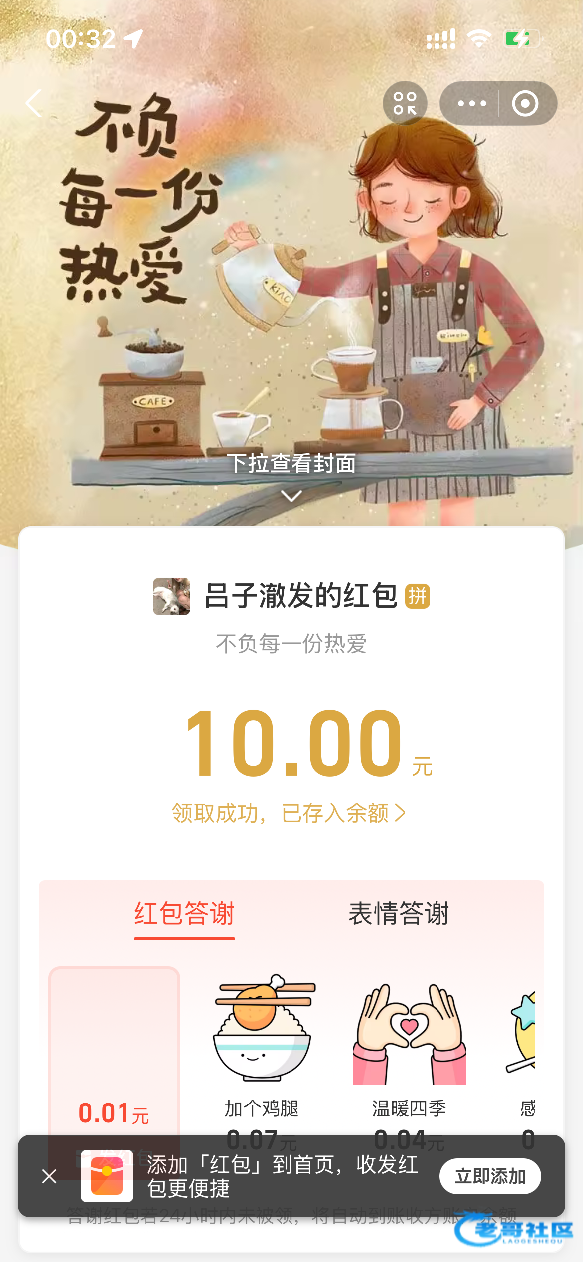 感谢老哥的红包