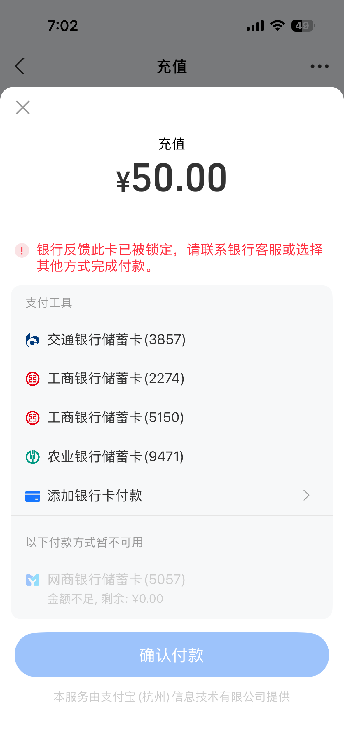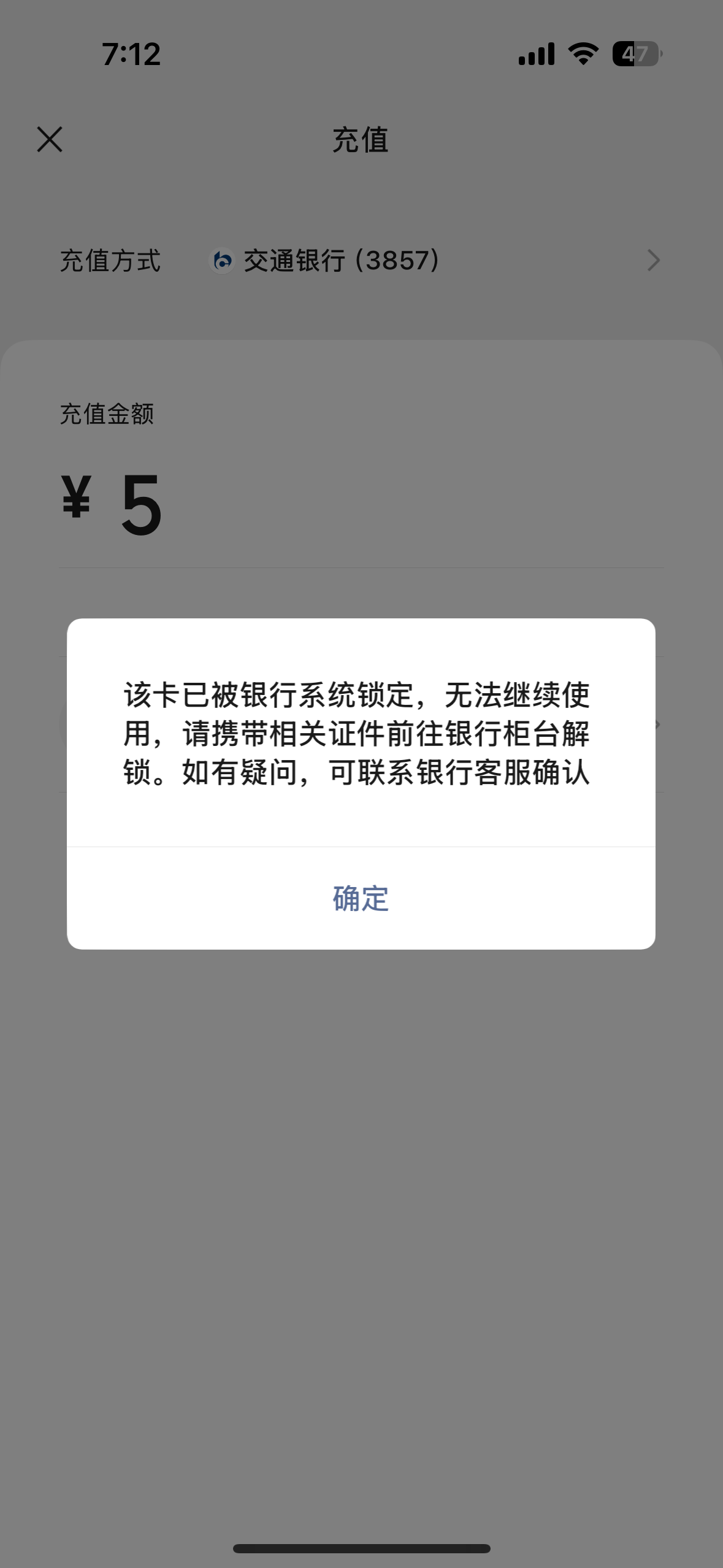 我这段时间都是ok下的银行卡 今天我去买奶茶 直接被锁定了 付不出来钱 是怎么回事