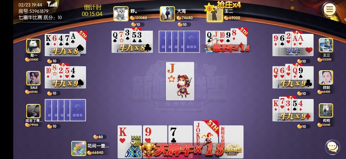 奉劝老哥网的玩家,不要去碰773瓦力棋牌的牛牛,他会让你输到癫狂,我目前连输8天了,只能查最近三天记录,每天一把没...