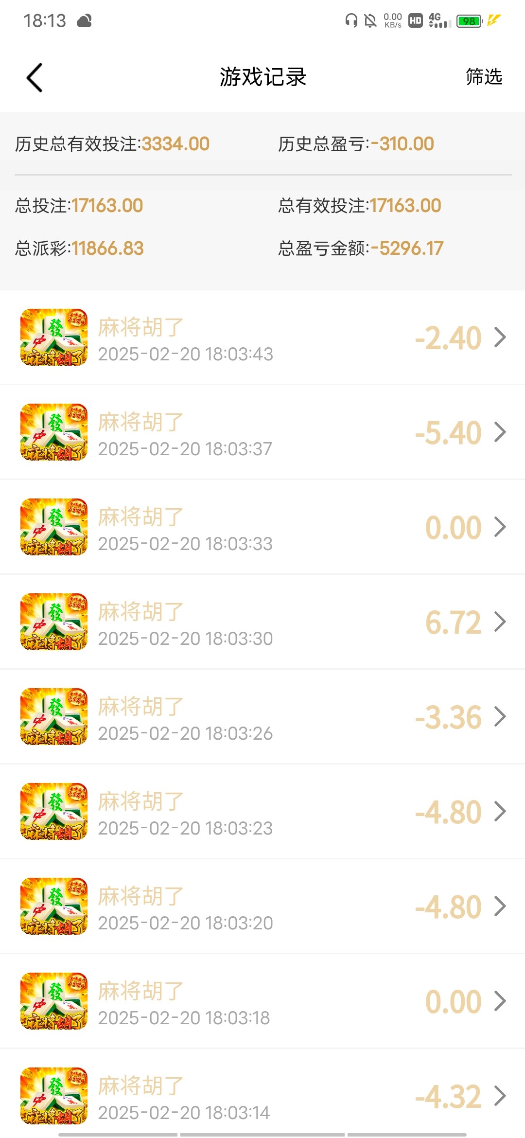 让一个破麻将吃了5000,是真恶心啊 才刷特么一万流水