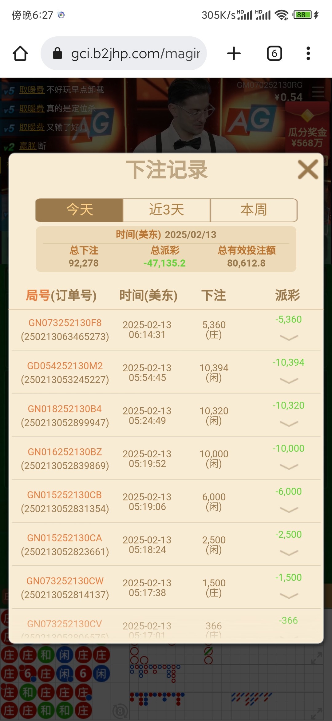 每次玩真人一直挂的时候,立马退出来去摇pg,可以摇大注点,基本几十把...