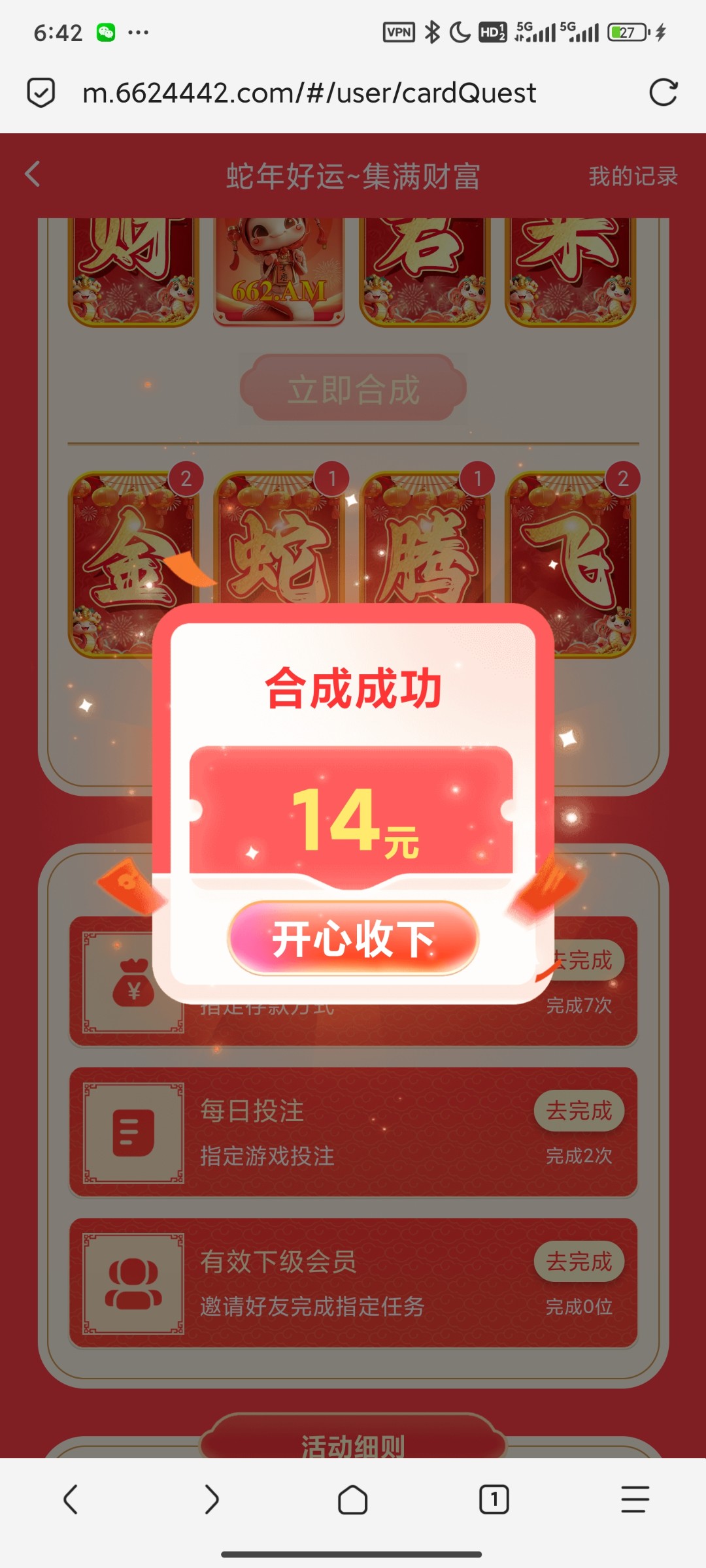 差一点就挂逼了,最后8块钱充进去上6张