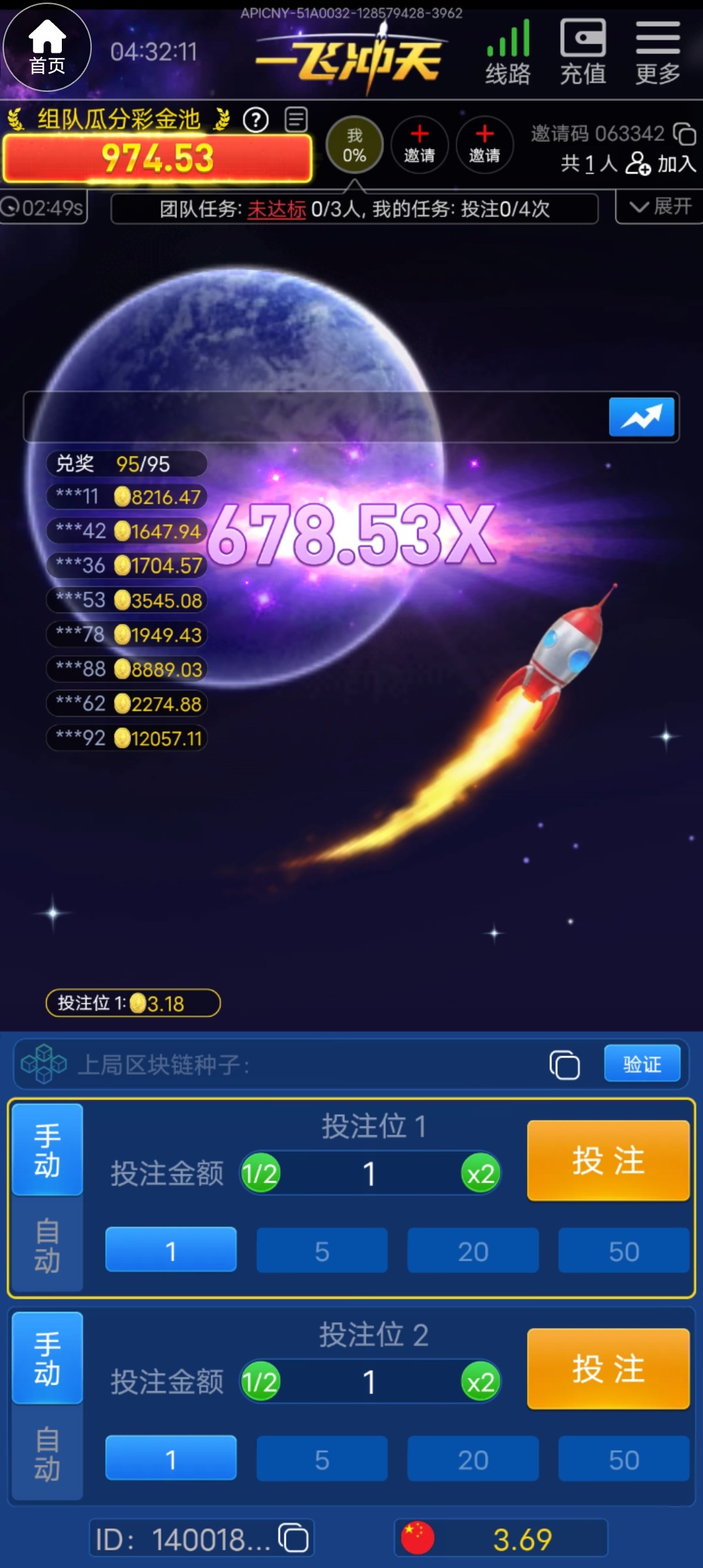一飞冲天 1块钱红包想着多拉几把,tmd第一次就给千倍,给我机会不中用啊,三倍就收了
