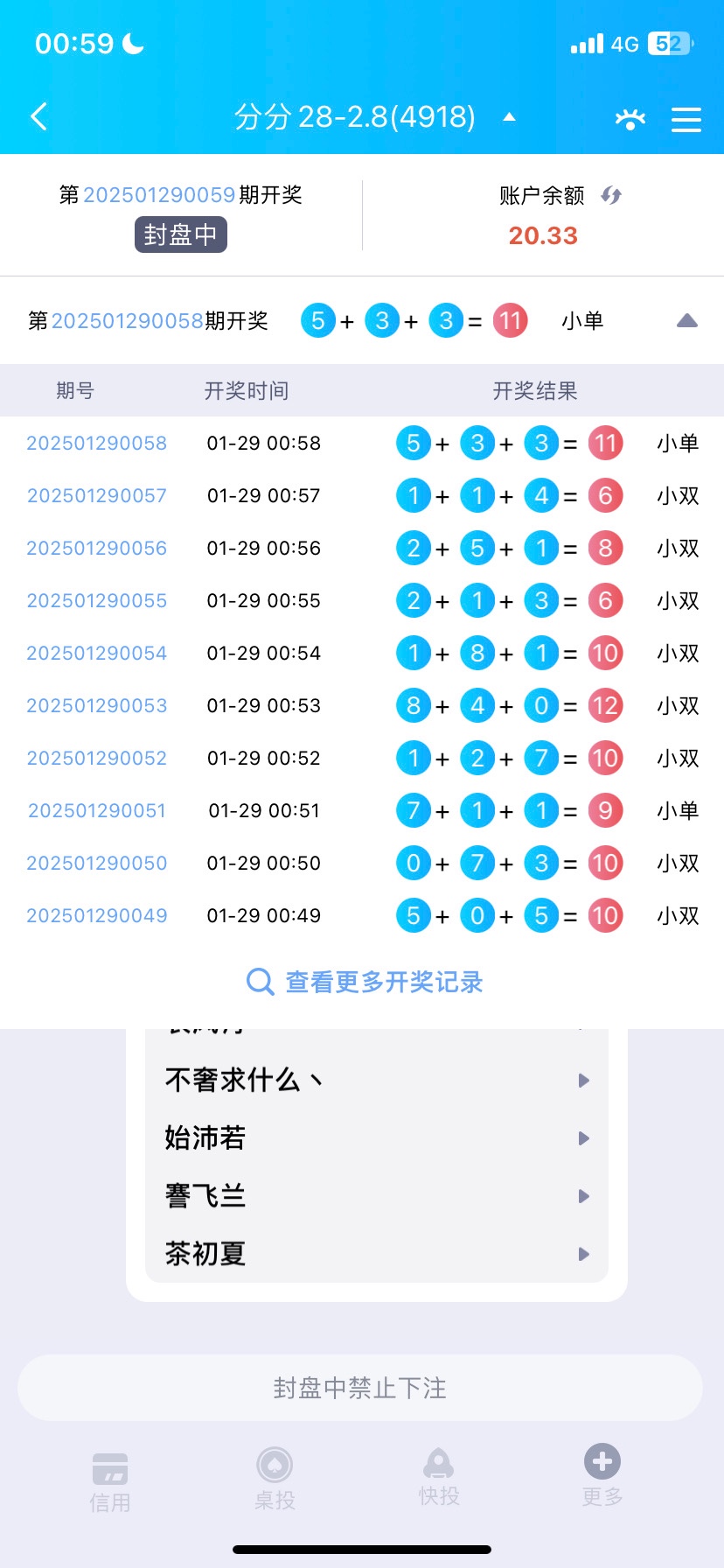 分分28一直开小咱真不知道怎么回事,前几天玩个龙虎14连虎,现在分分又一直开小,一直砍一直挂