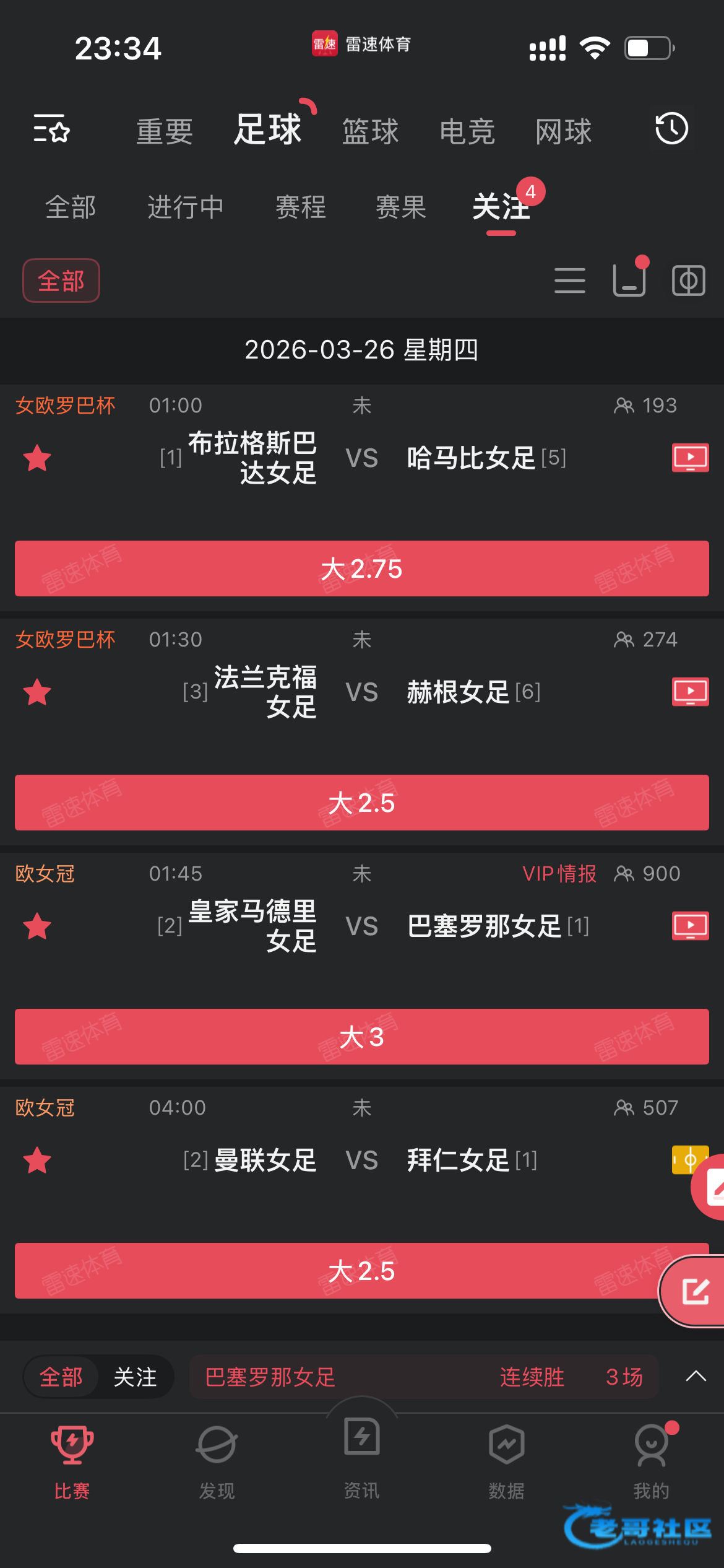 这四场女足机构初盘都开的大球,晚点摁个4串1