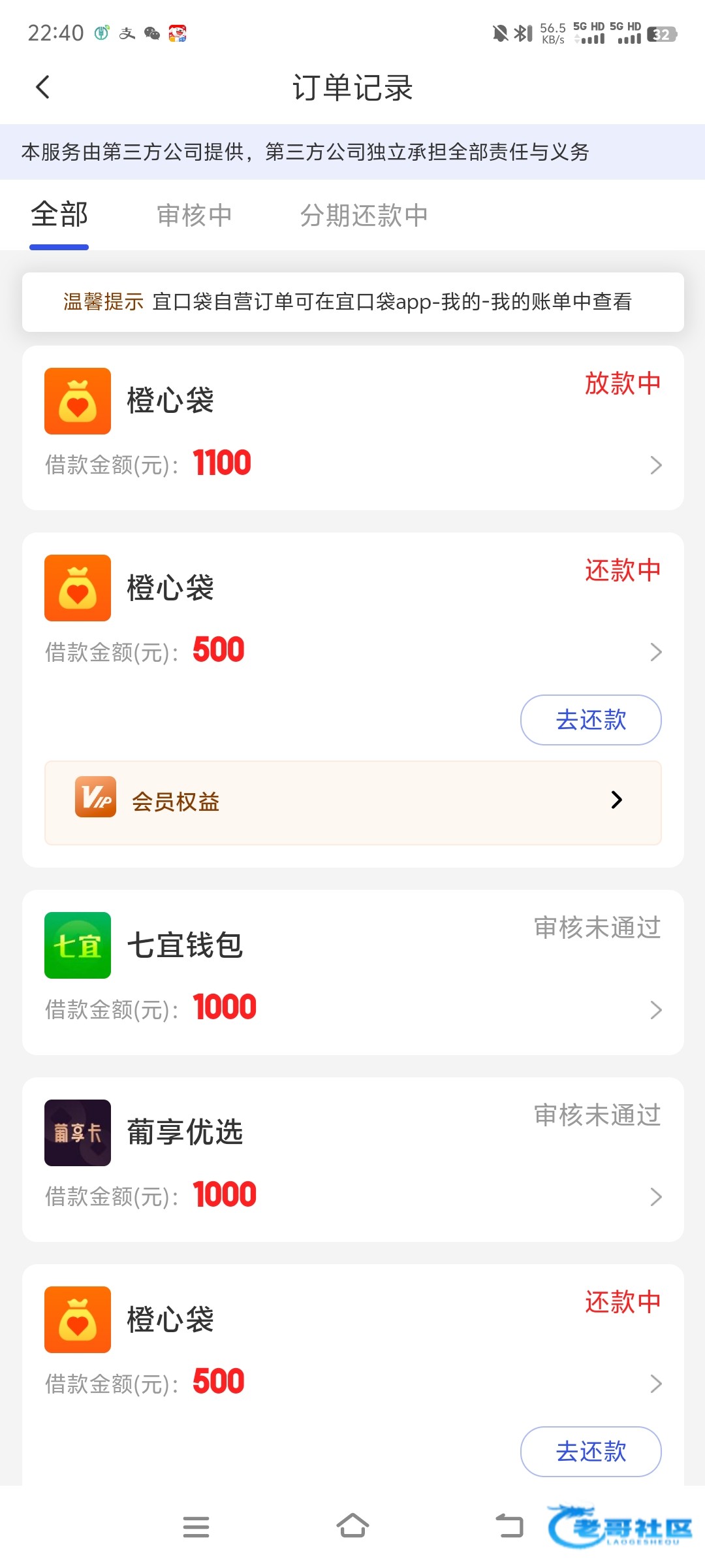 宜口袋橙心贷第七笔到账。耗时四天 赢了给兄弟们团