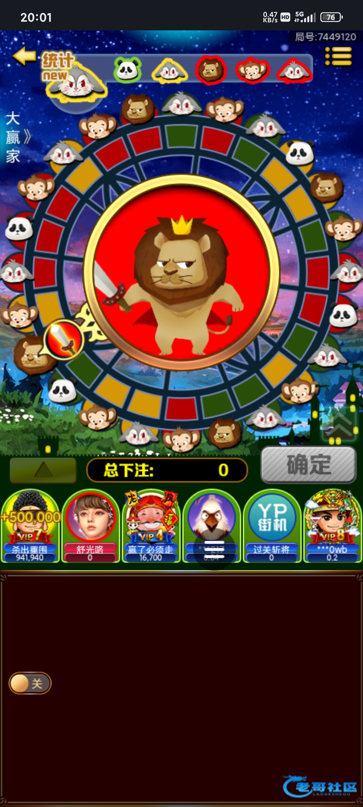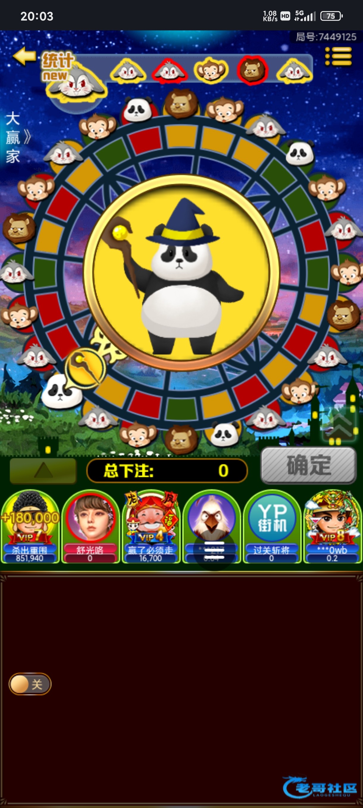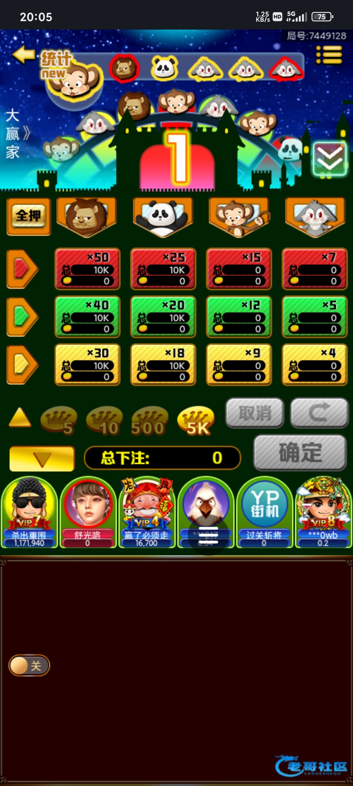 14个开始在同一个房间,这老哥也是牛逼啊,狮子熊猫中,来到120个就跑路了V7以上最大能押1万啊,会员加持了。。。...