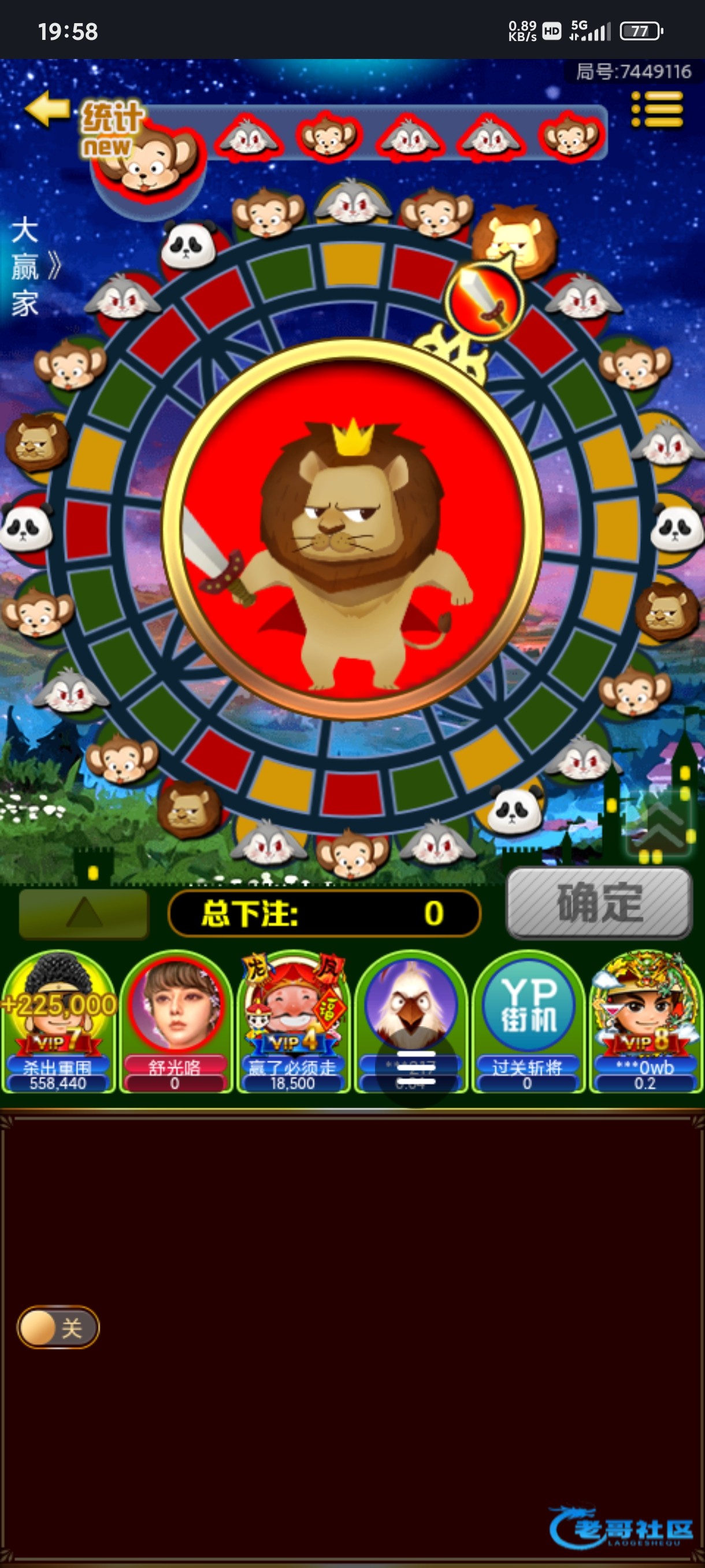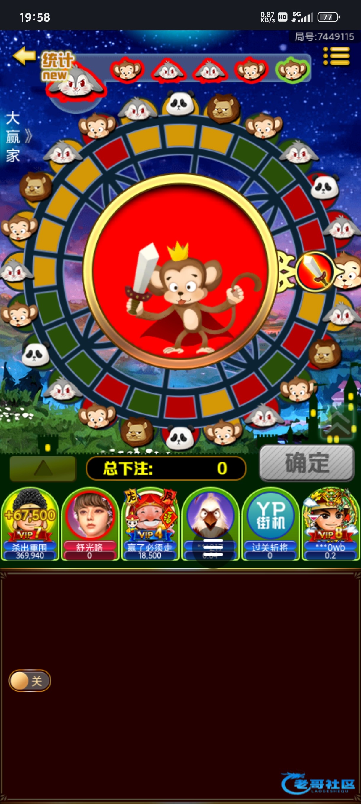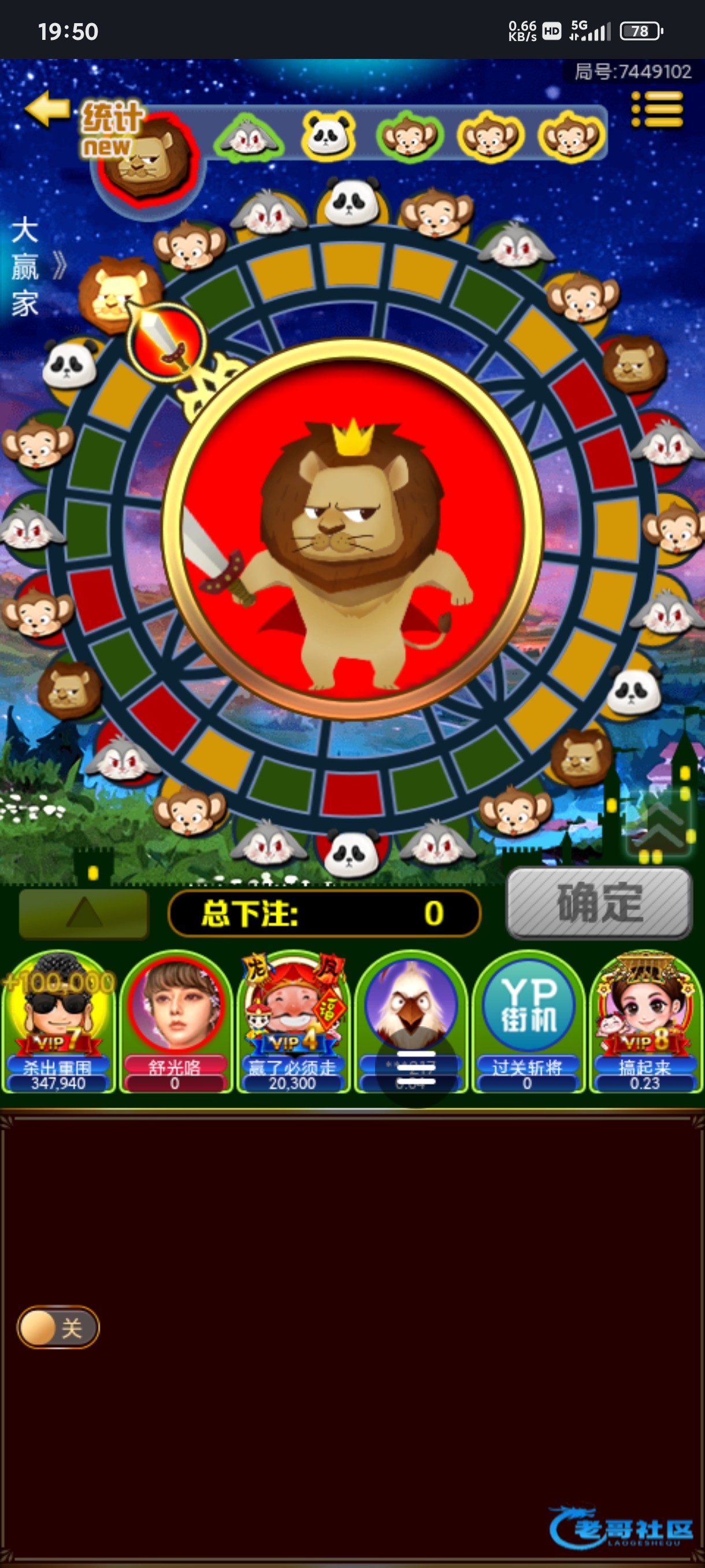 14个开始在同一个房间,这老哥也是牛逼啊,狮子熊猫中,来到120个就跑路了V7以上最大能押1万啊,会员加持了。。。...