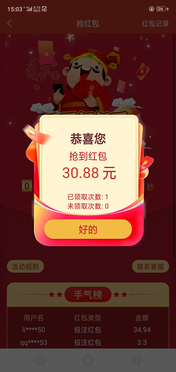 1036 第一次抢红包,这么大的。还附赠了一个十倍。