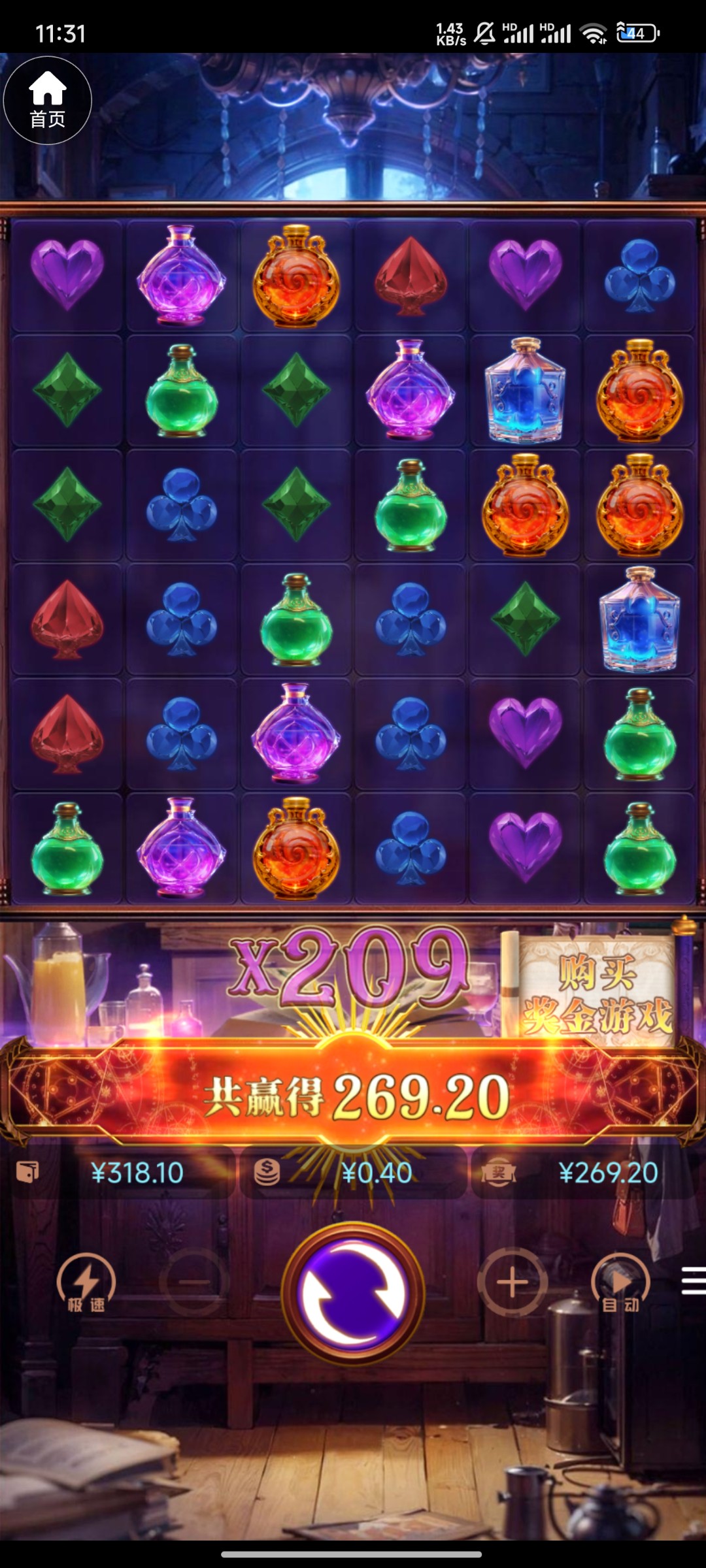 真可惜,进免费第一次就209倍,炸了269,后边14手全都空转!