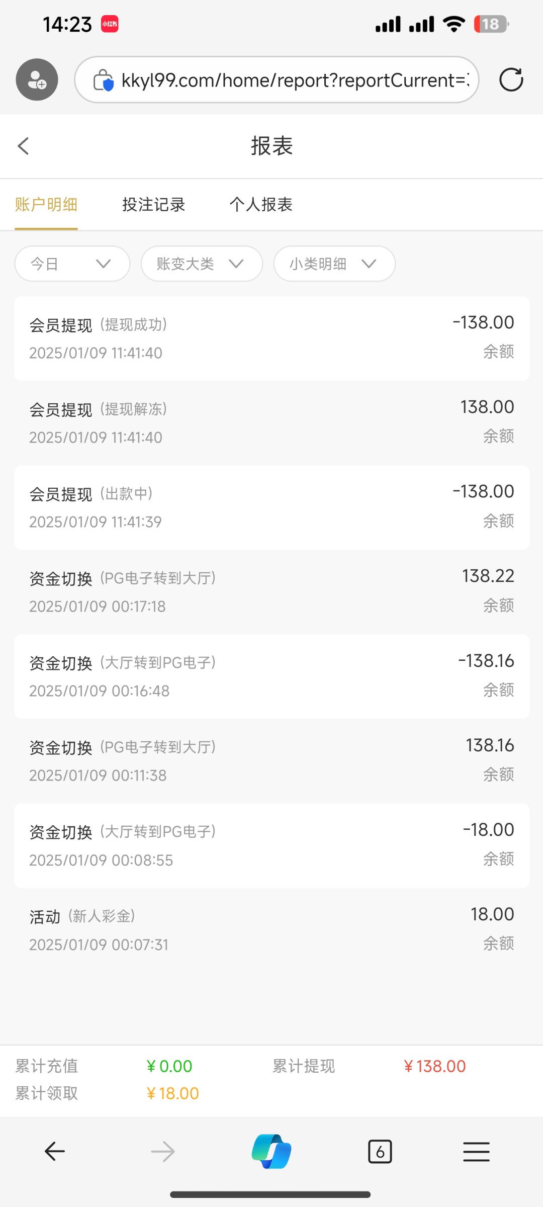 今天新出的kk国际,可以拿兑换码领18彩金,但是这个平台彩金出款需要充值同等金额,当时就想打着玩玩,打麻将打到了1...