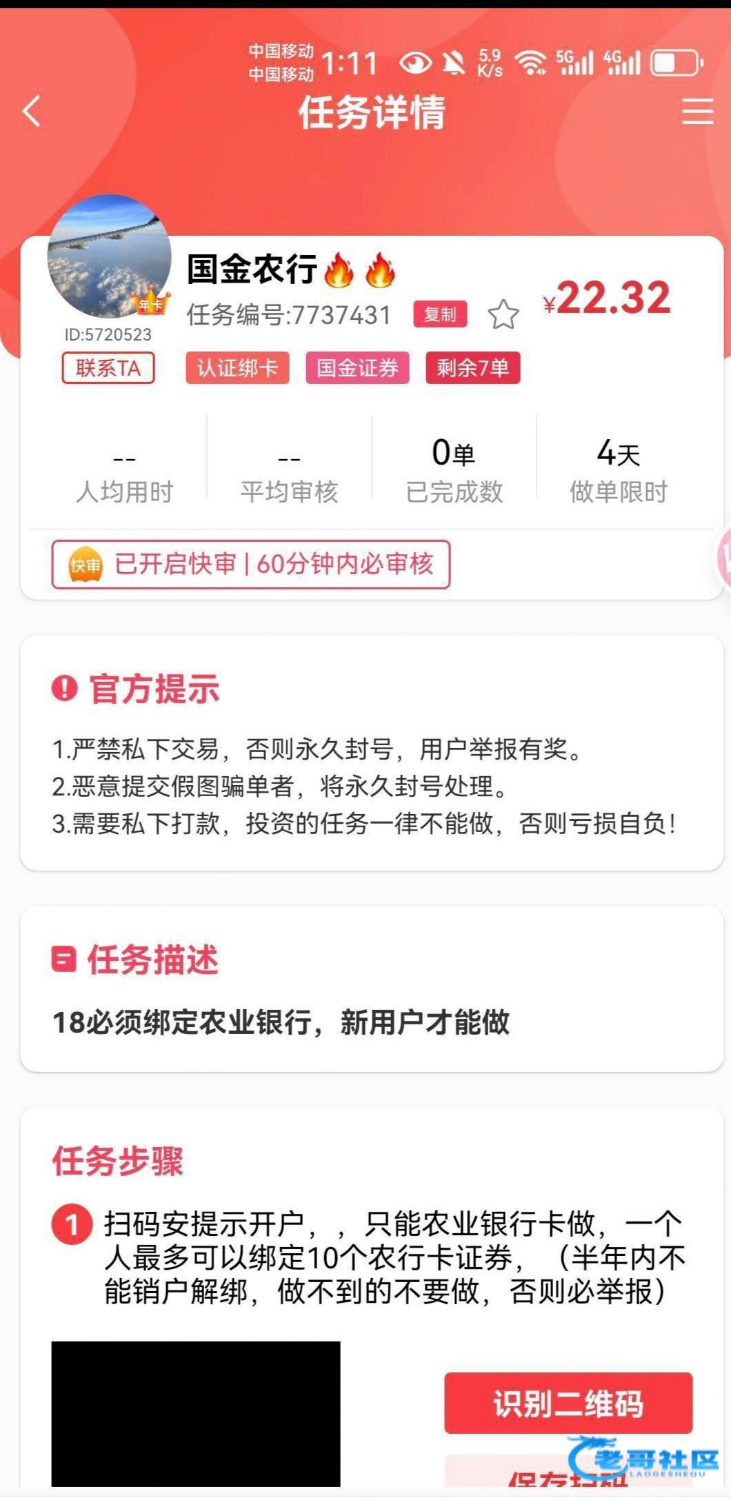 没开国金的老哥也不要气馁,明天星期一,赏帮赚任务接一下,一个小时内通过谢谢