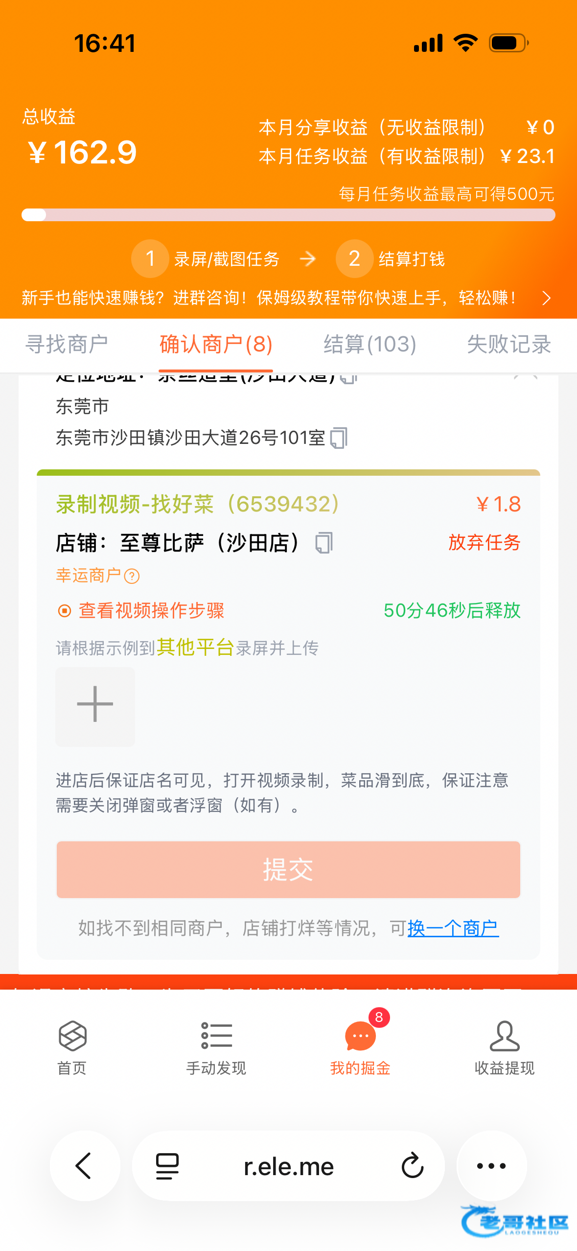 实在没路的老哥 可以整个猪脚饭 昨天说的录制外卖平台菜品 这个平台单价会高一点 1.8一个 提现也在淘宝闪购上面链接https://r.ele.me/ele-find-shop-together