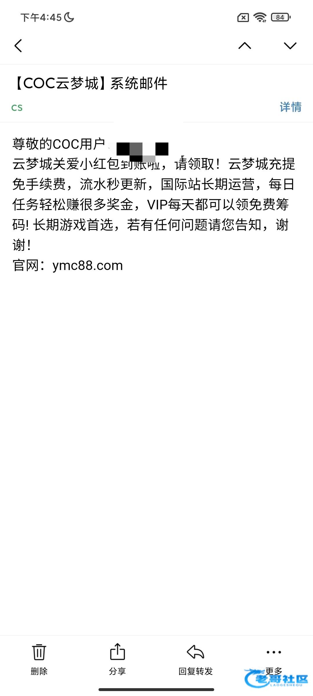 我就在老哥下边注册的,只充过50,今天在邮箱里看到的,有充过的去看看链接ymc88.com