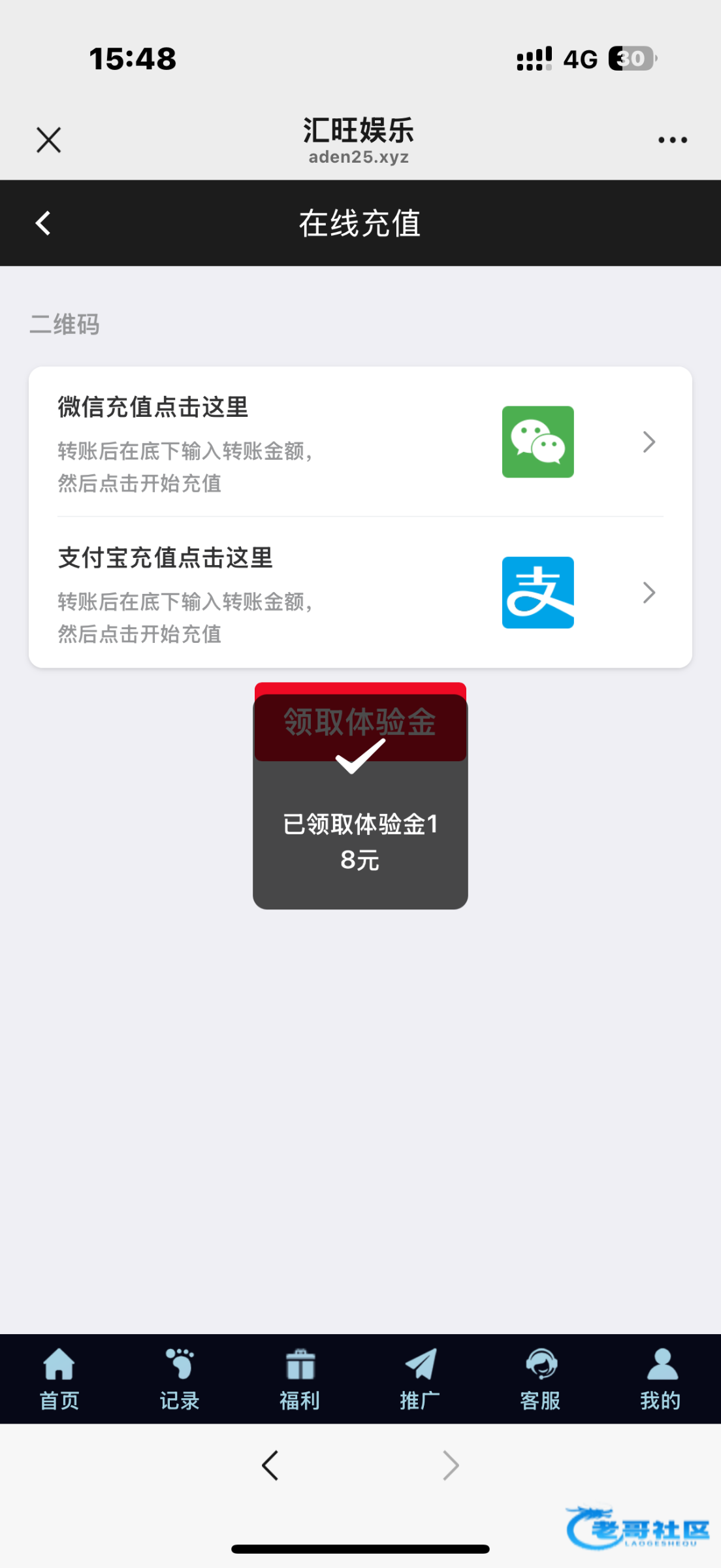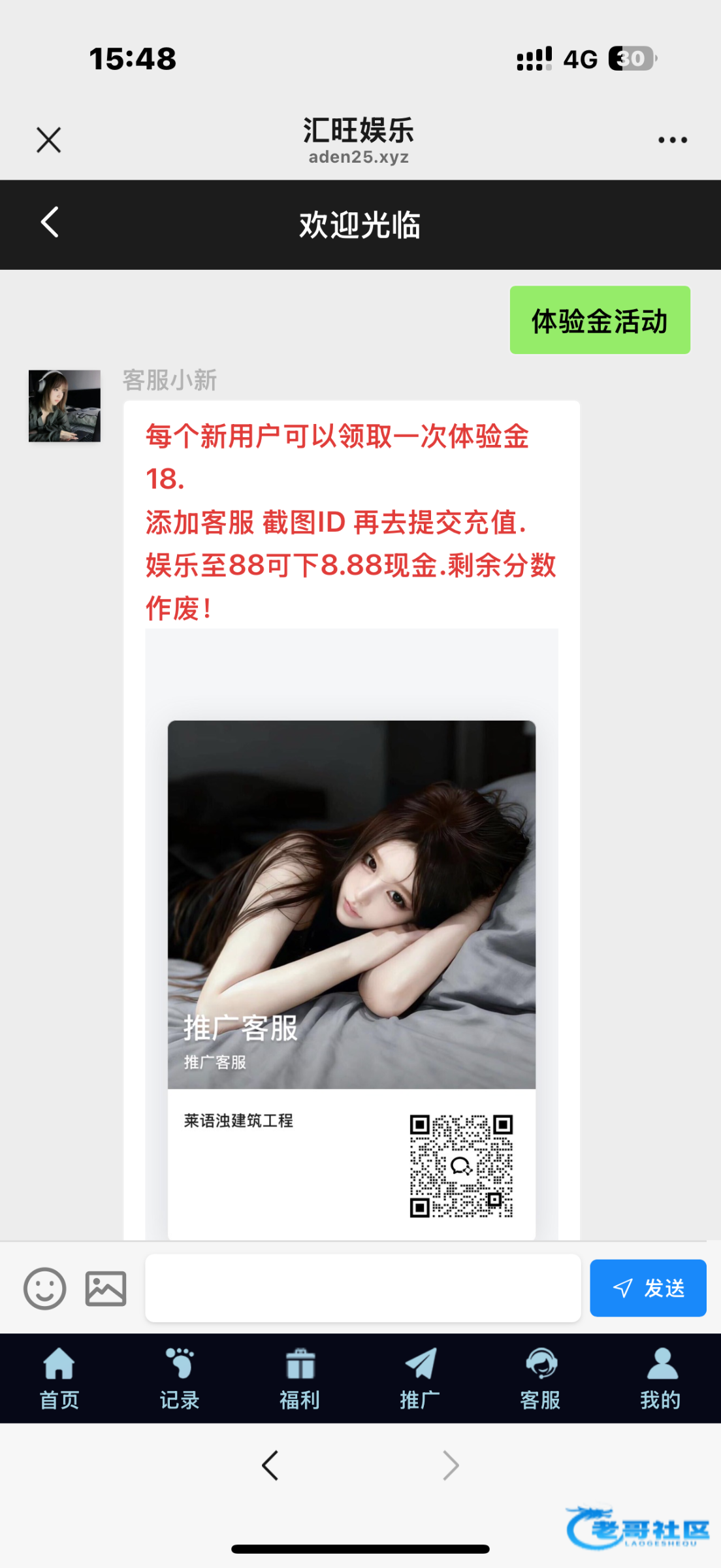 扫码登陆找客服领18体验金