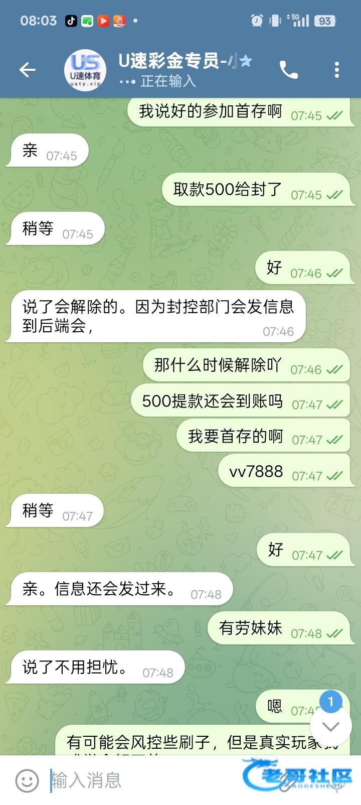 今天看到有老哥发了u速体育送88,我就去申请了,结果给了38,玩真人提了500,不一会儿就封号了,结果我去飞机客服那里聊了一会儿,说了点好话,还真给解开了,又提款了500,显示等待分批到账了!你们也可以去试试!
