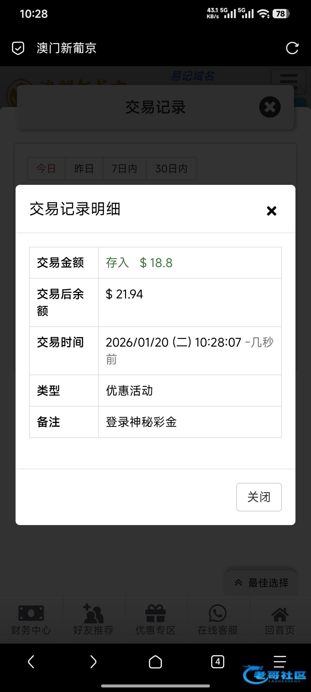8558和8822虽然说合并了,但是优惠好像不一样,昨天有老哥发8822我上去也有六块多,今天用8558.com 网址登录显示这个神秘彩金,感觉彩金是分开的。