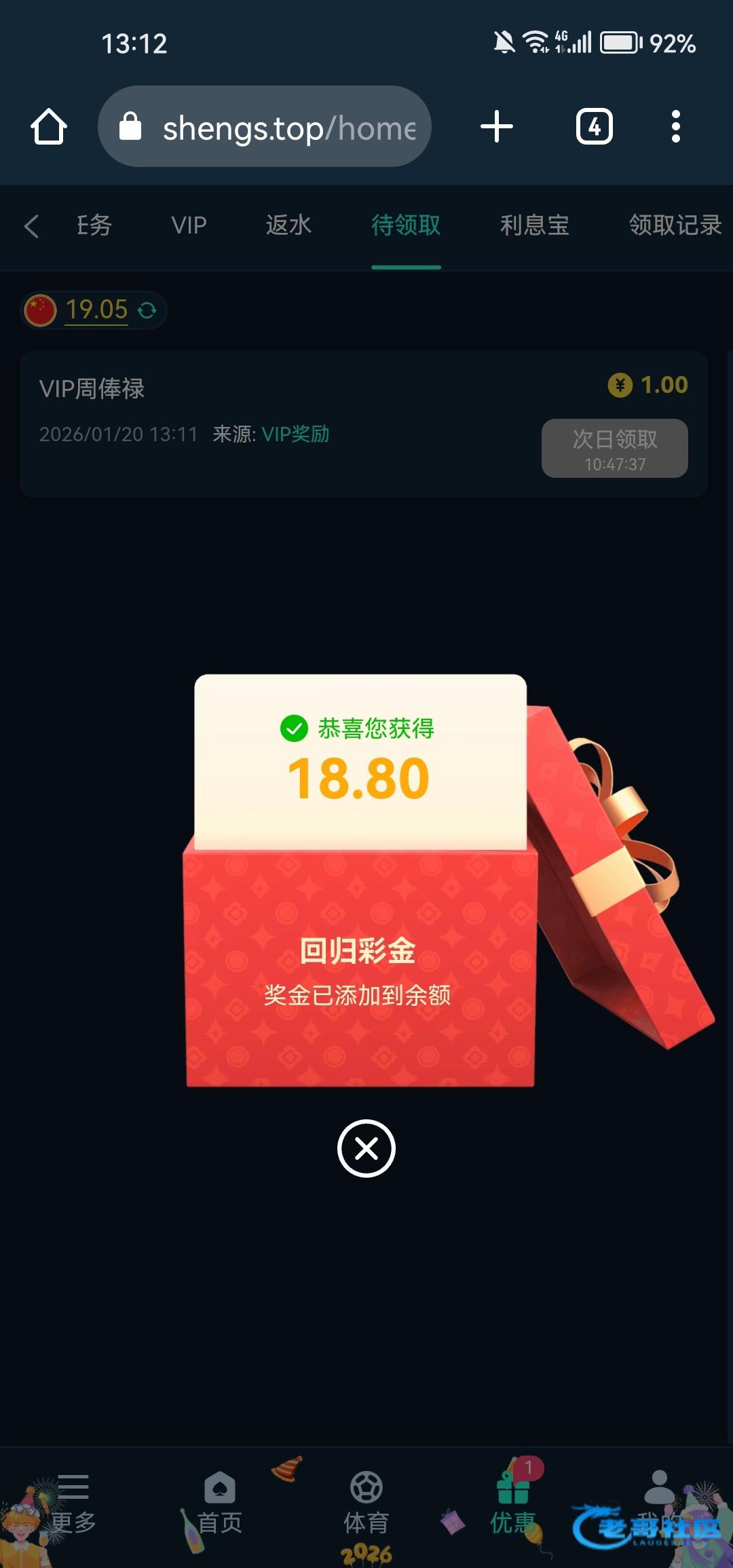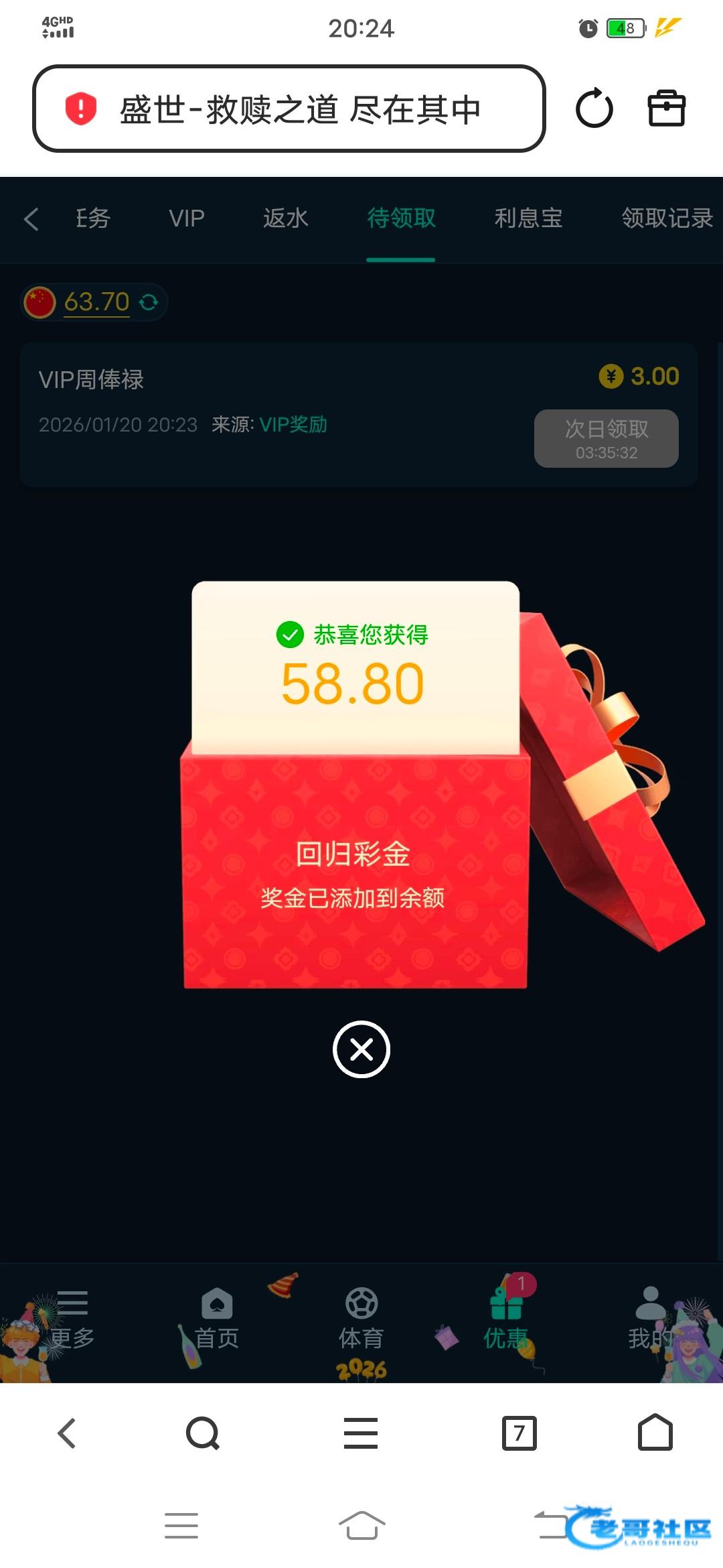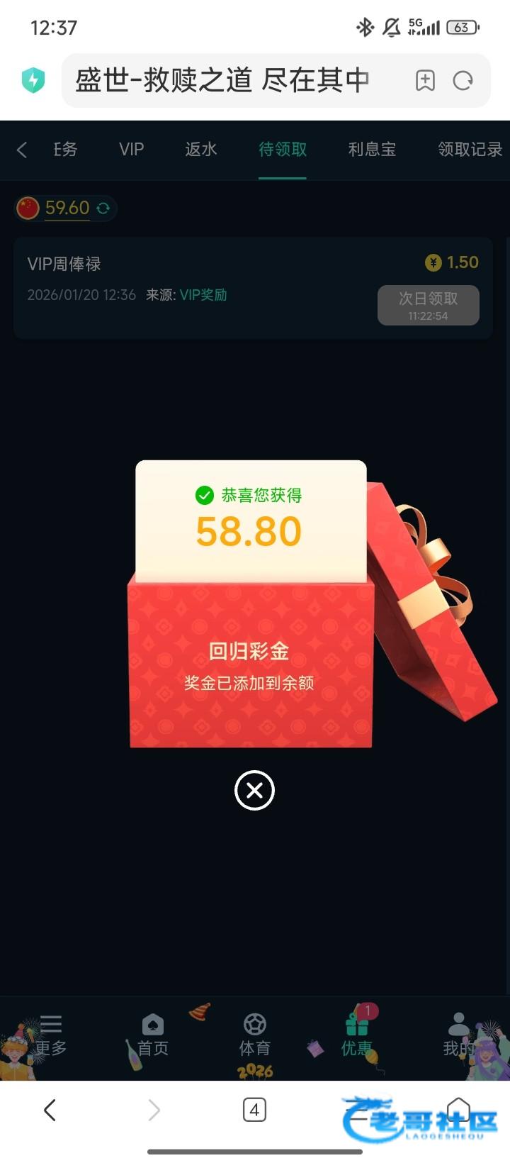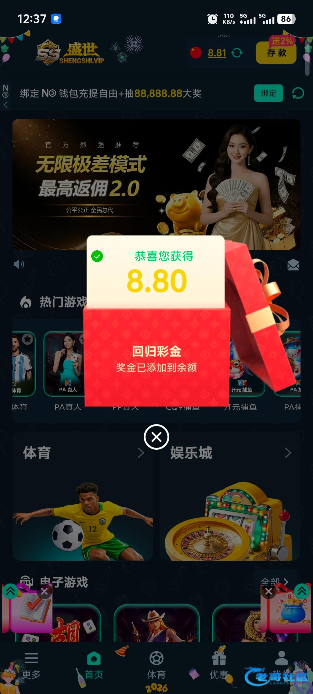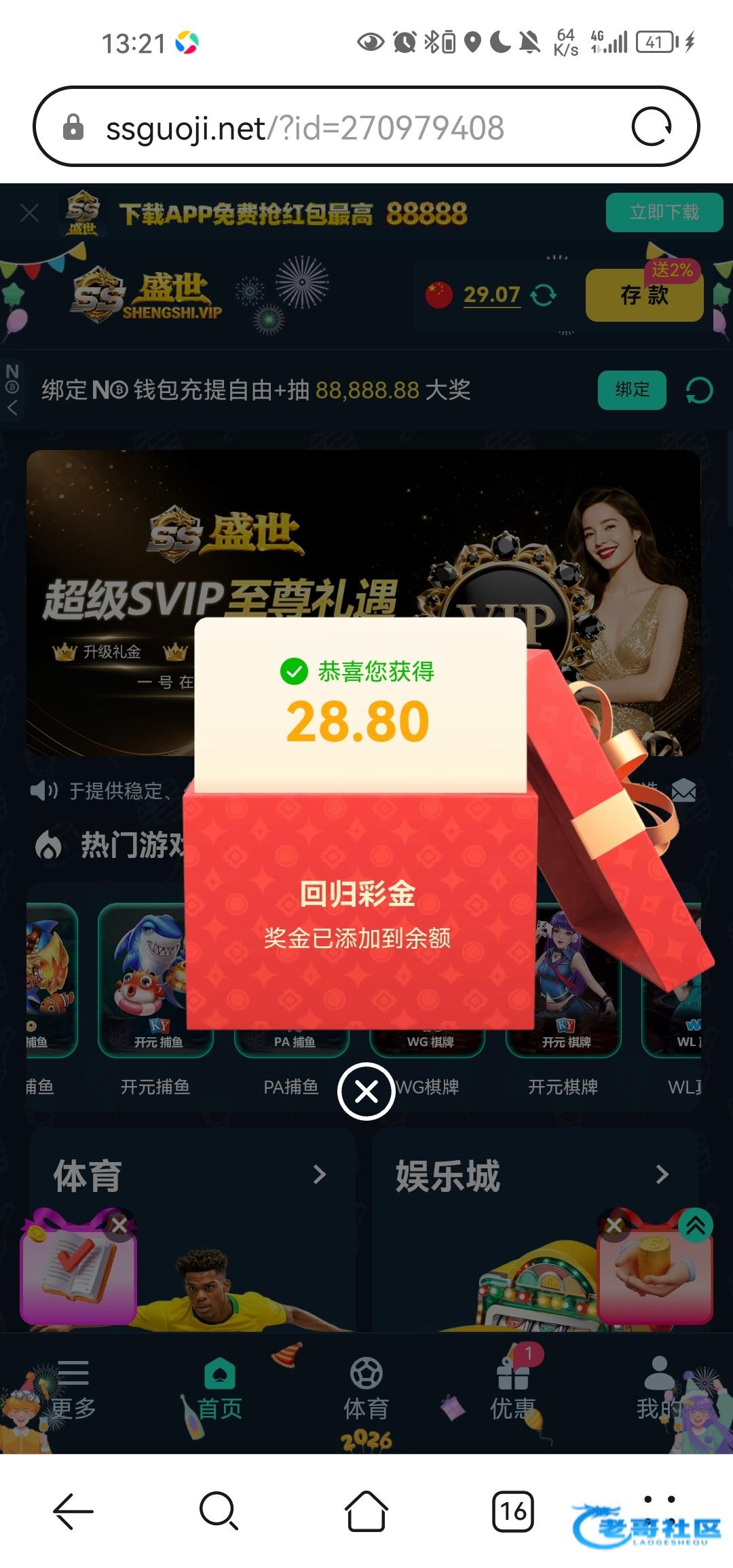 老哥的稳台盛世有回归彩金,几天没登录的可以去看看