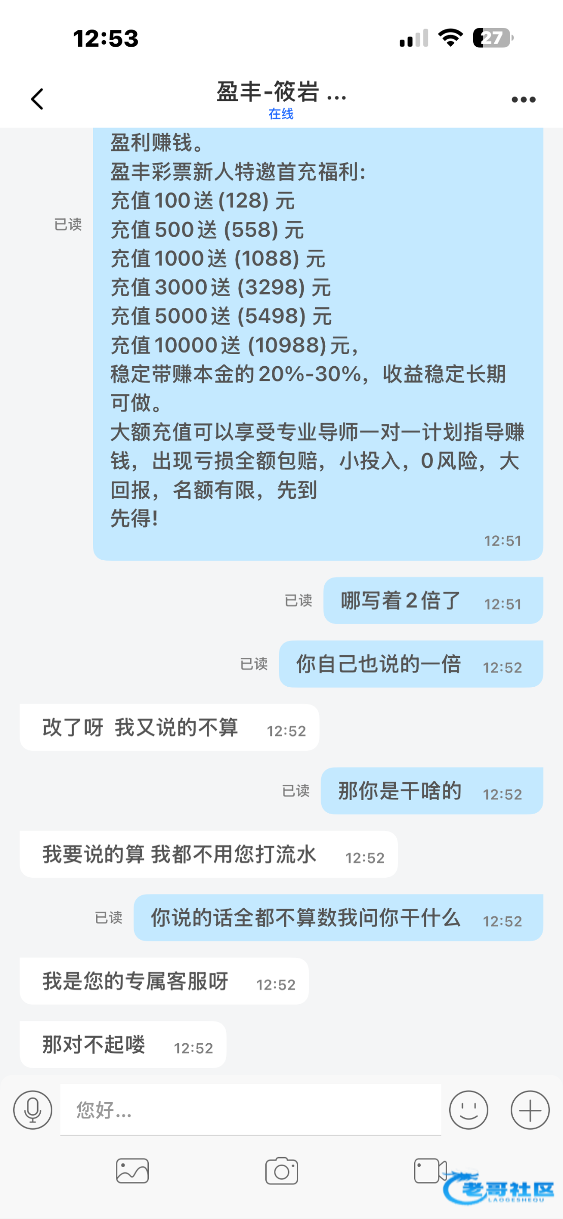 发短信过来说100送128 问了客服客服说分三期送 问清楚了一倍流水 冲完之后就送了25 电子一丁点水都没有 剩8块钱百家乐打到一百寻思下个本金 下分提示要三倍流水 又去找客服 客服说去反映了 让我再看看 结果又改成2倍流水 还扣了12块钱 傻逼客服说是送12块钱 多送了12 我真没招了 傻逼客服说的话也很有意思 避雷吧老哥们