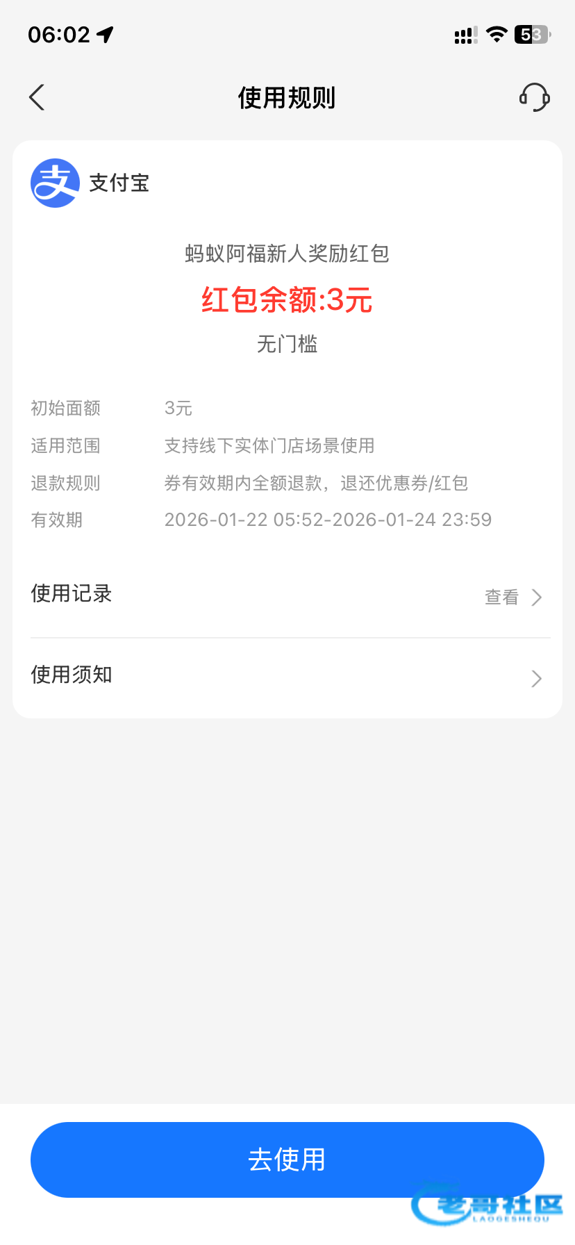 应用商店下载蚂蚁阿福,然后支付宝一键登录,即可,在支付宝卡包有一张3块无门槛红包扫码支付会自动抵扣,嫌麻烦的无视即可。