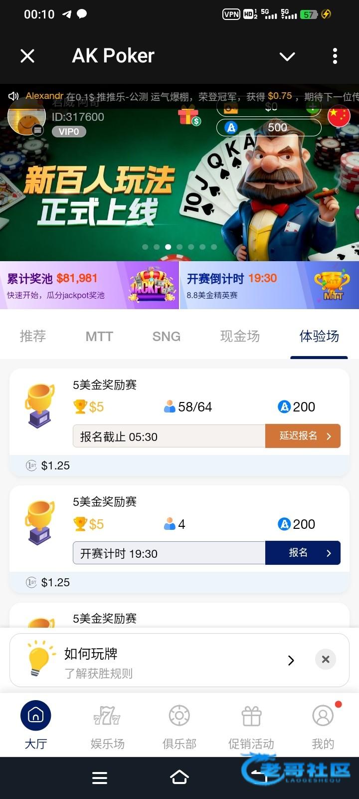 @akpoker进机器人进去游戏注册自动送500体验金比赛用相当于门票似的,好像是胜出得5u,我不会玩德州,勇士去撸,出了反馈,黑不黑未知