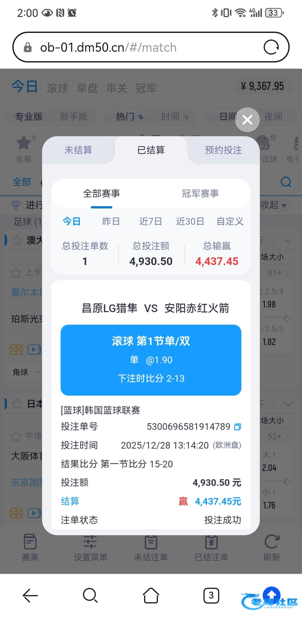 诺克提斯 ▶ yujin108 @yujin108 ,第一节确实14比20,有的体育台数据容易弄错,开始给你结算对的是因为开始数据显示15比20,结算错了肯定给你扣了 3天前