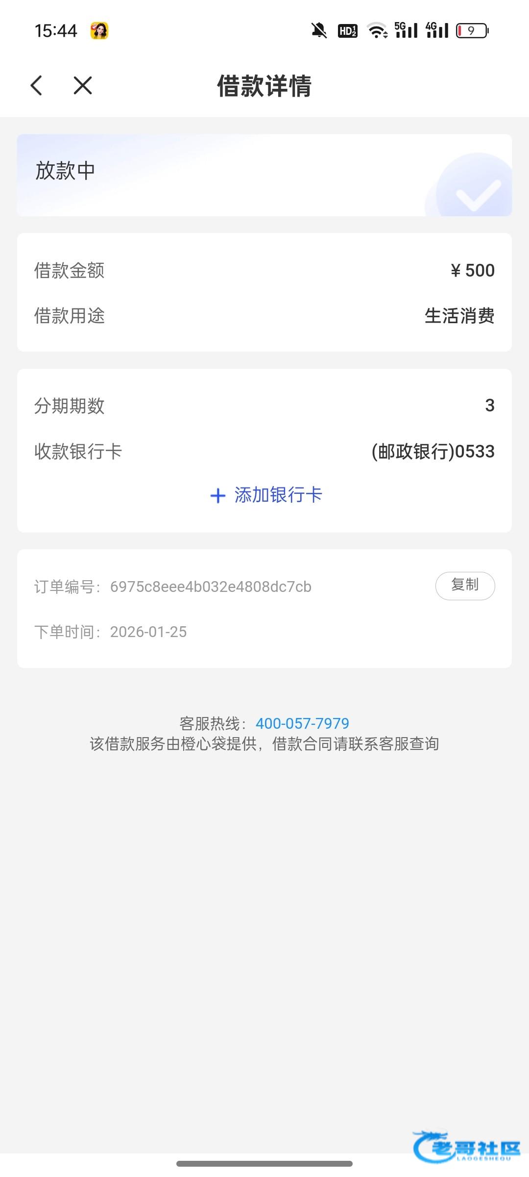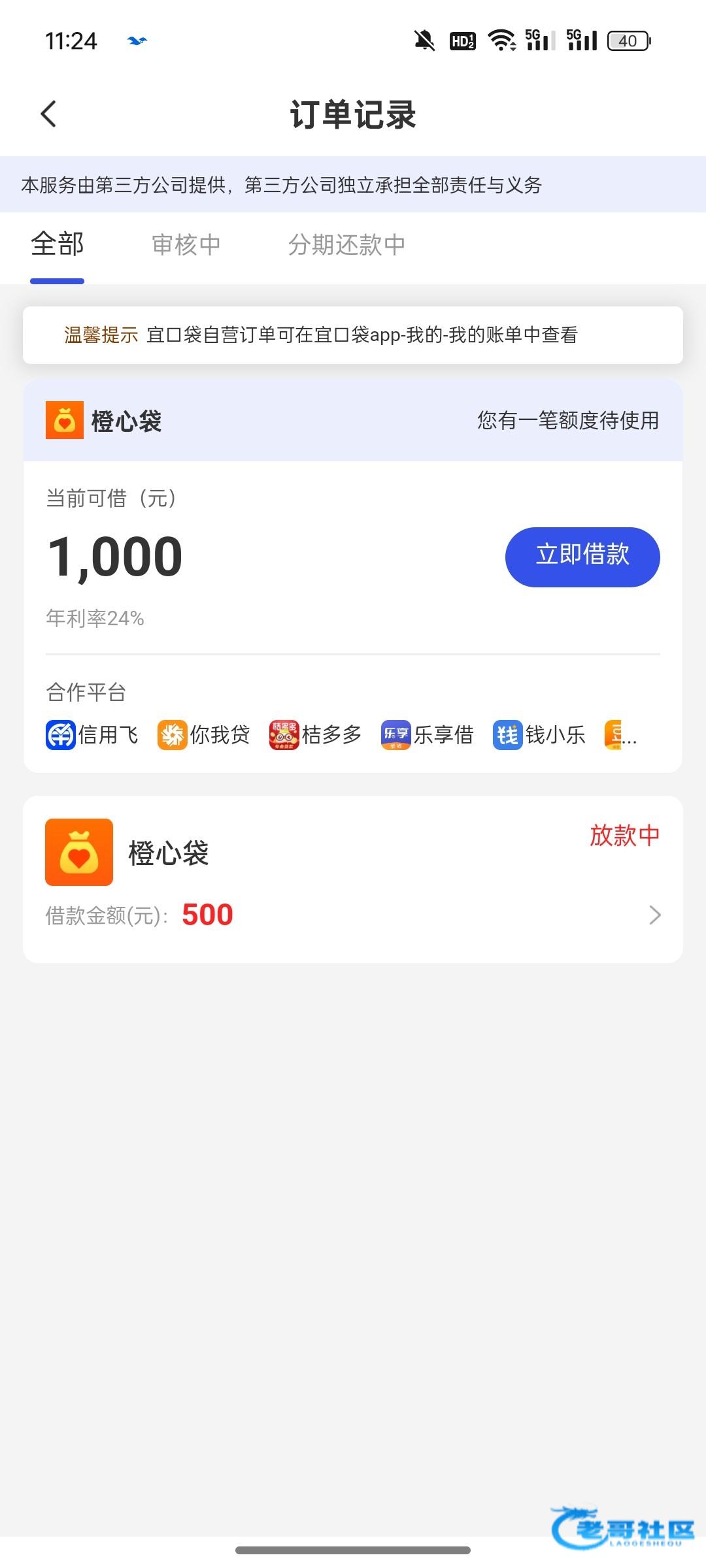 橙心花我一下借了两笔500,平台也借了五百,都打款了