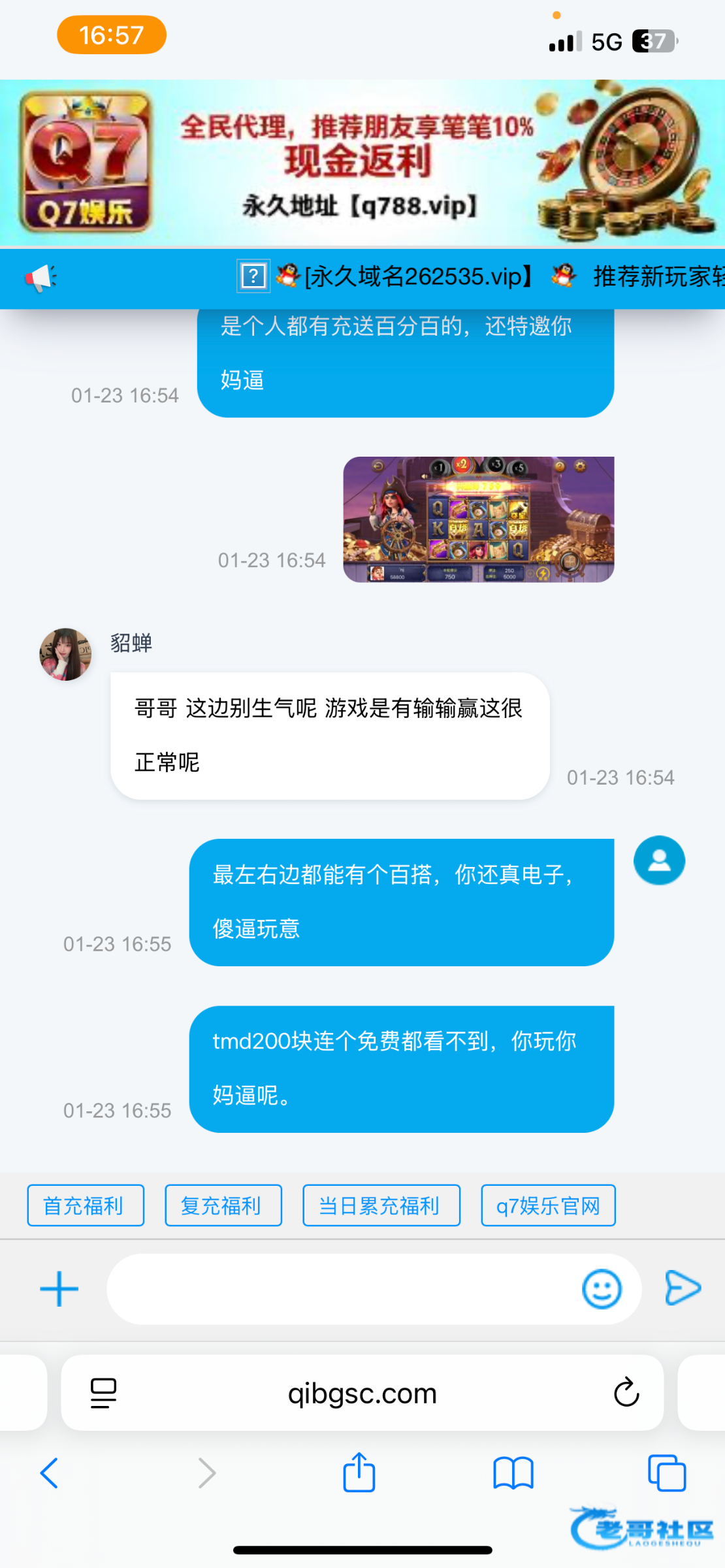 打电话来给我说100送100,当时我在论坛都搜了一遍,没看见这平台,黑不黑我不知道,感觉就是黑平台,里面pg就几个游戏,这应该是新开的诈骗台,结果我充值好了,我看见活动里面谁都有这个活动,谁都能参加,还他妈还跟我说我是是特邀,里面的电子真他妈离谱,我见过假电子,没见过这么假的,最左和最右边都能有个百搭,永远都是差一个才能连起来,200块拉1块钱连个免费都没看到,我两个手机号都接到这个平台电话了,最近一定会打电话给大家的,注意防骗。就算给你送1万你也打不出来