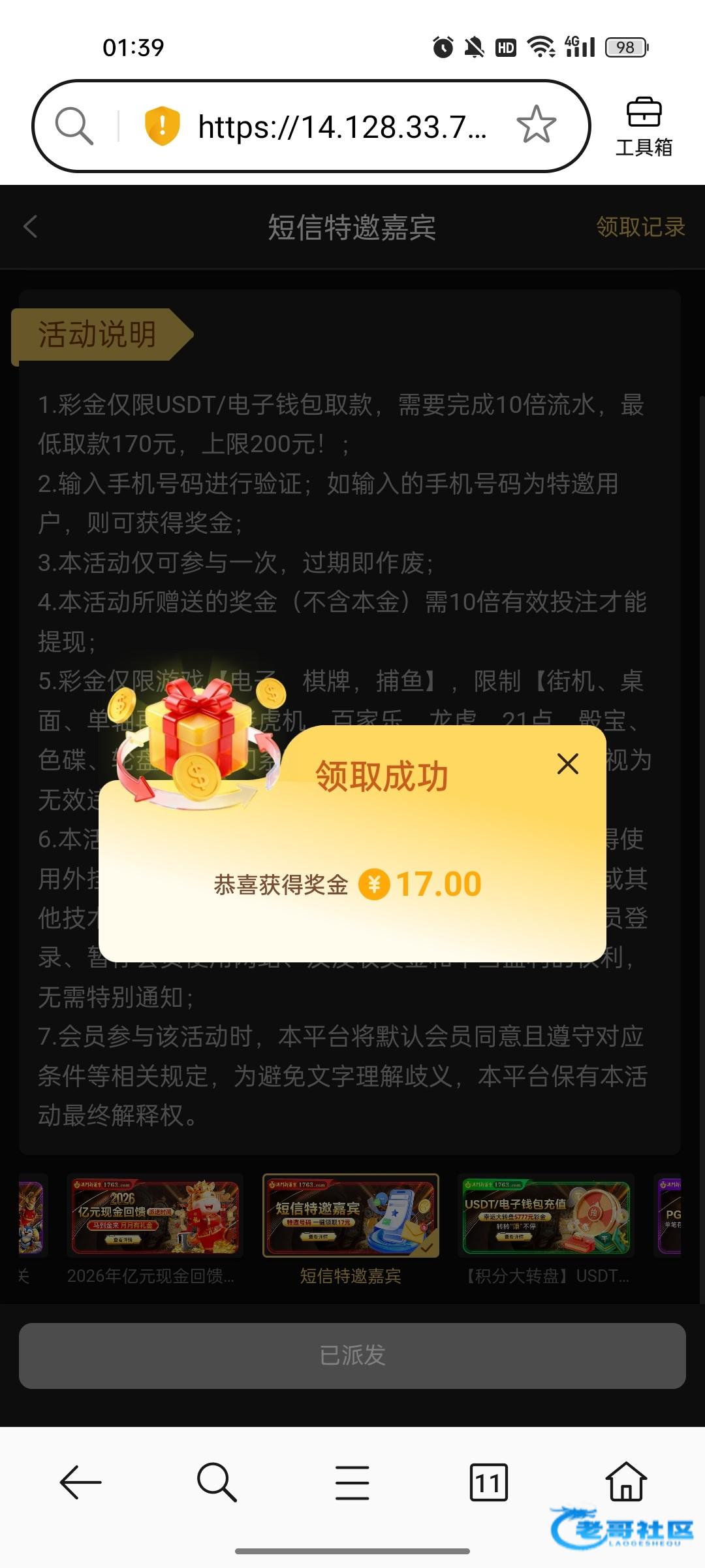 领到了,没打出来