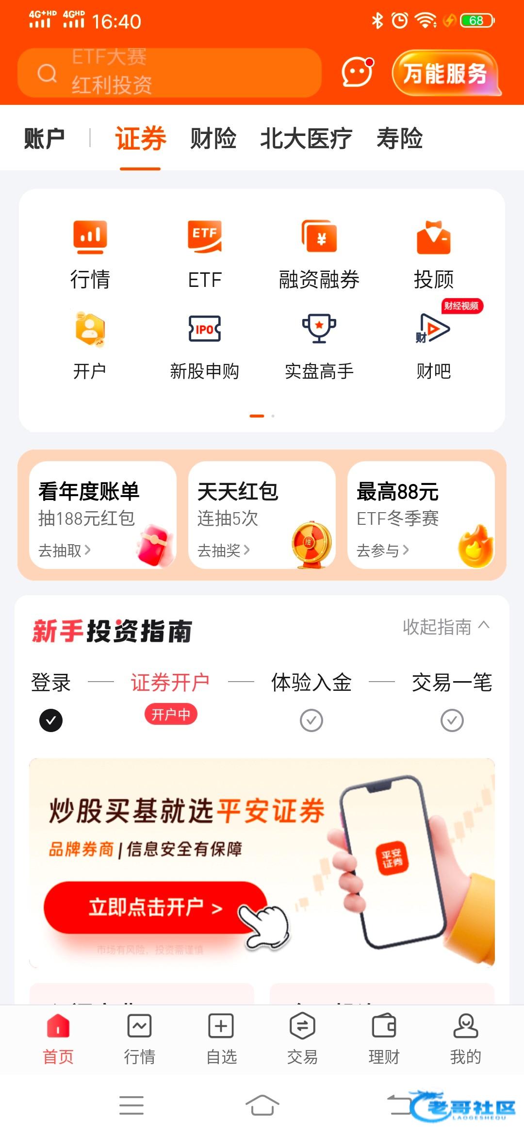 没有开过平安证券的老哥人人68.8,第一张图片划圈的地方是入口,平安证券首页那里,现在可以开不用等周一。