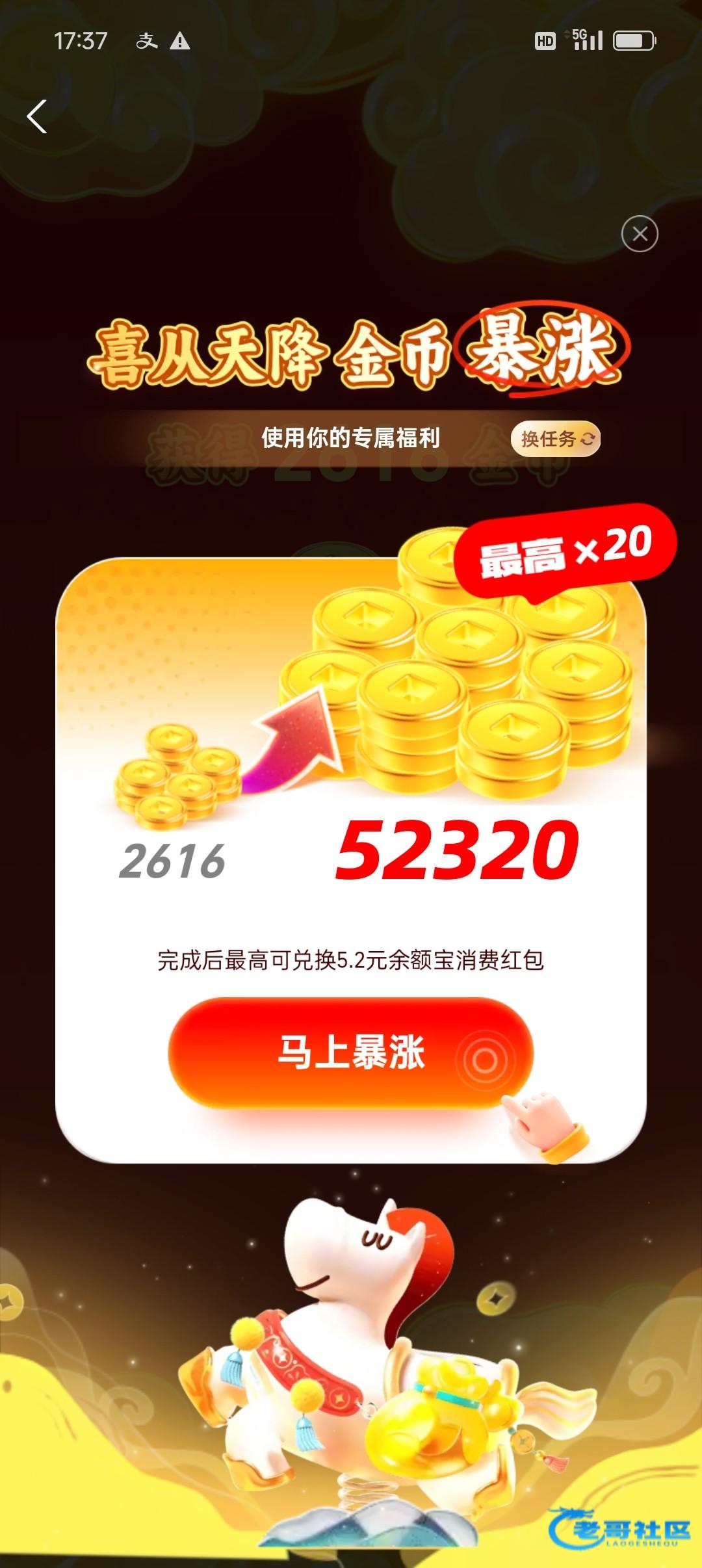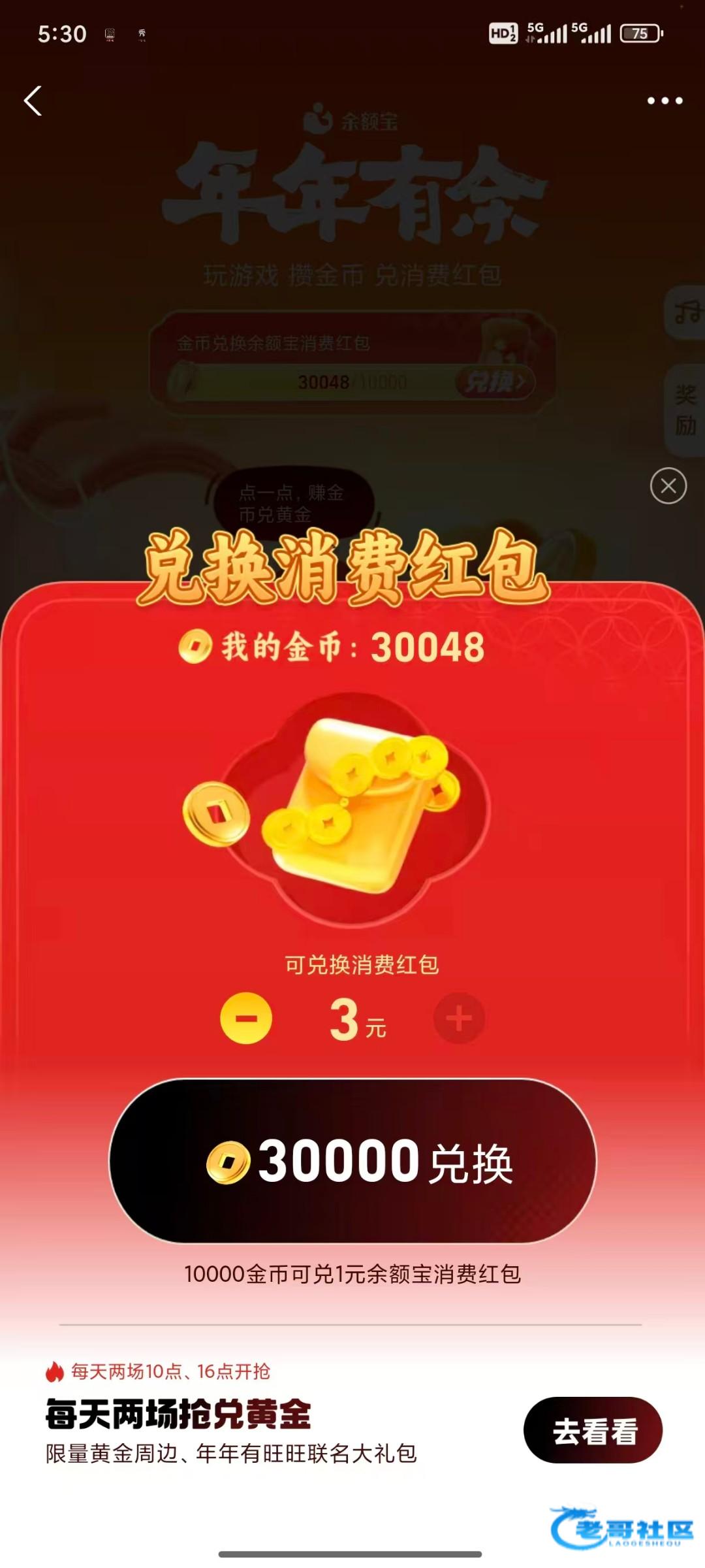 点进去余额宝下方这里有一个天天有鱼点进去 运气好的直接有消费红包 然后点那个去游戏 游戏结束一般都是三四千的积分,然后它会出现一个暴涨,直接去报账就行了,大概就是从银行卡转100到余额宝 然后1万积分等于一红包,把任务做完,保底三四块