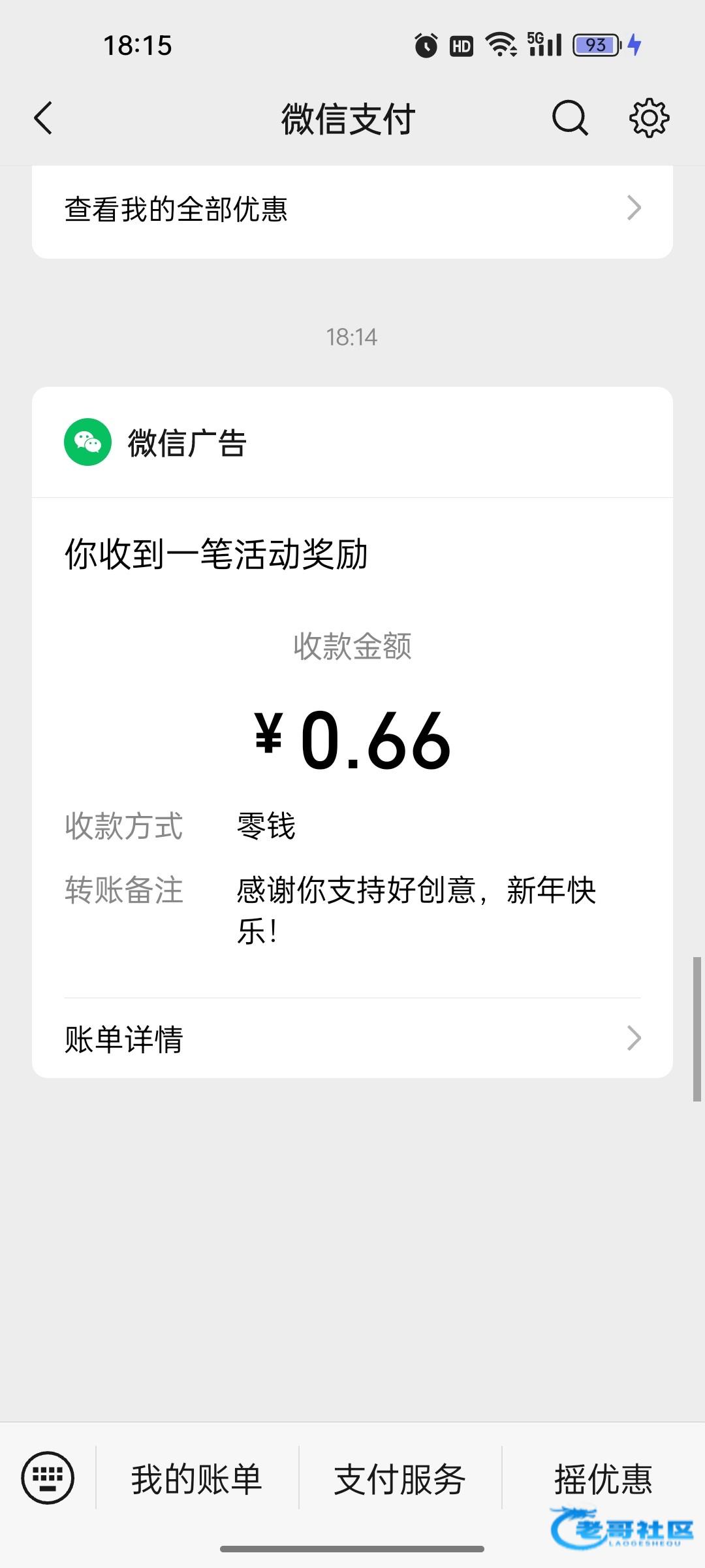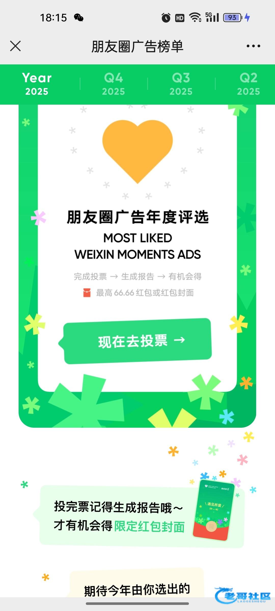 搜索微信广告助手,年度评选进去随便投10个票即可领取保底0.66最高66