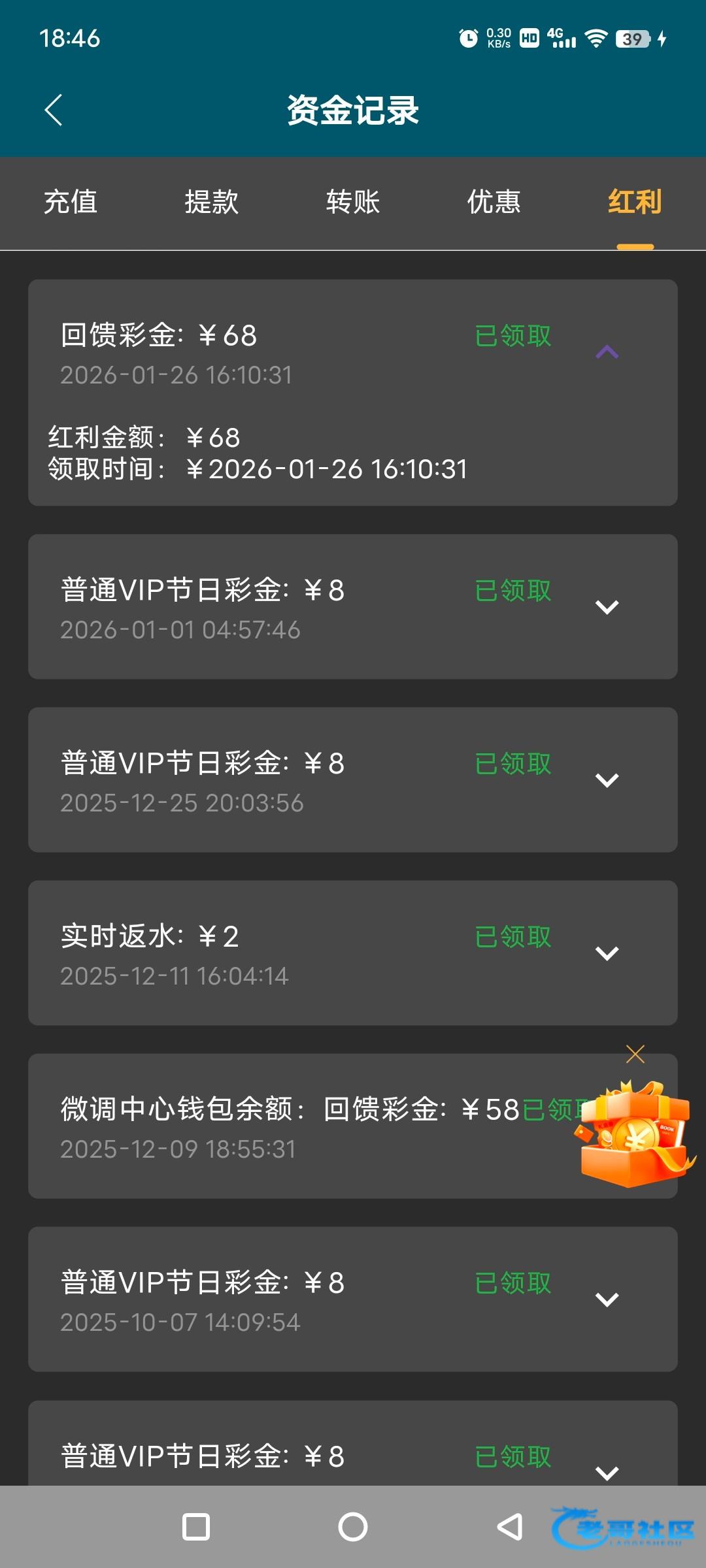 我也领到了68,可以PG玩了没水