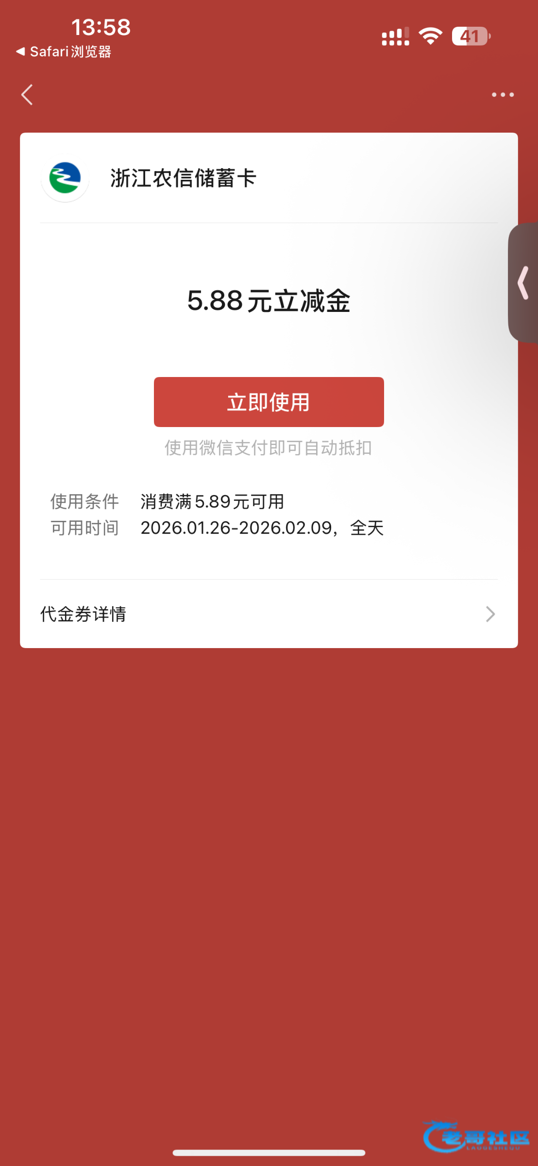中出你,指定那个银行卡才能立减,无效贴