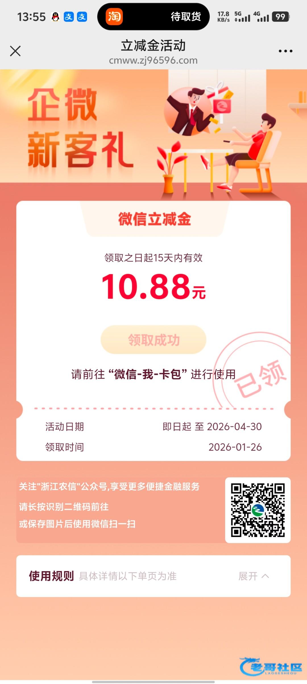 扫码添加微信,点他的推送,进去授权一下,点领取就可以了