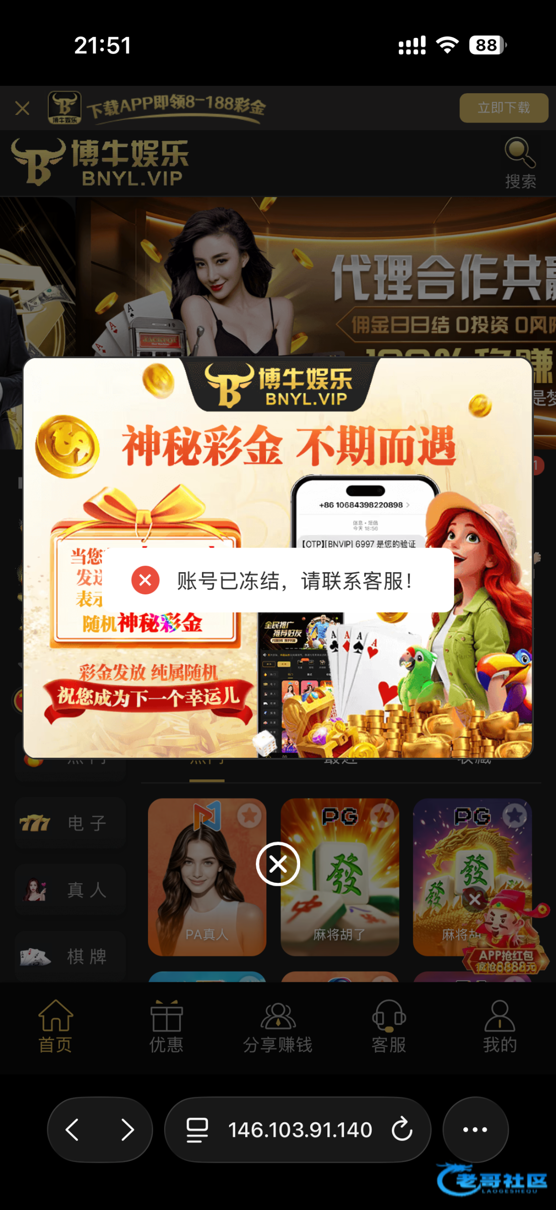 谢谢已经骂了 刚才打电话给我劝我玩电子100+100。我就想起来这里博牛被黑的不是一两个了