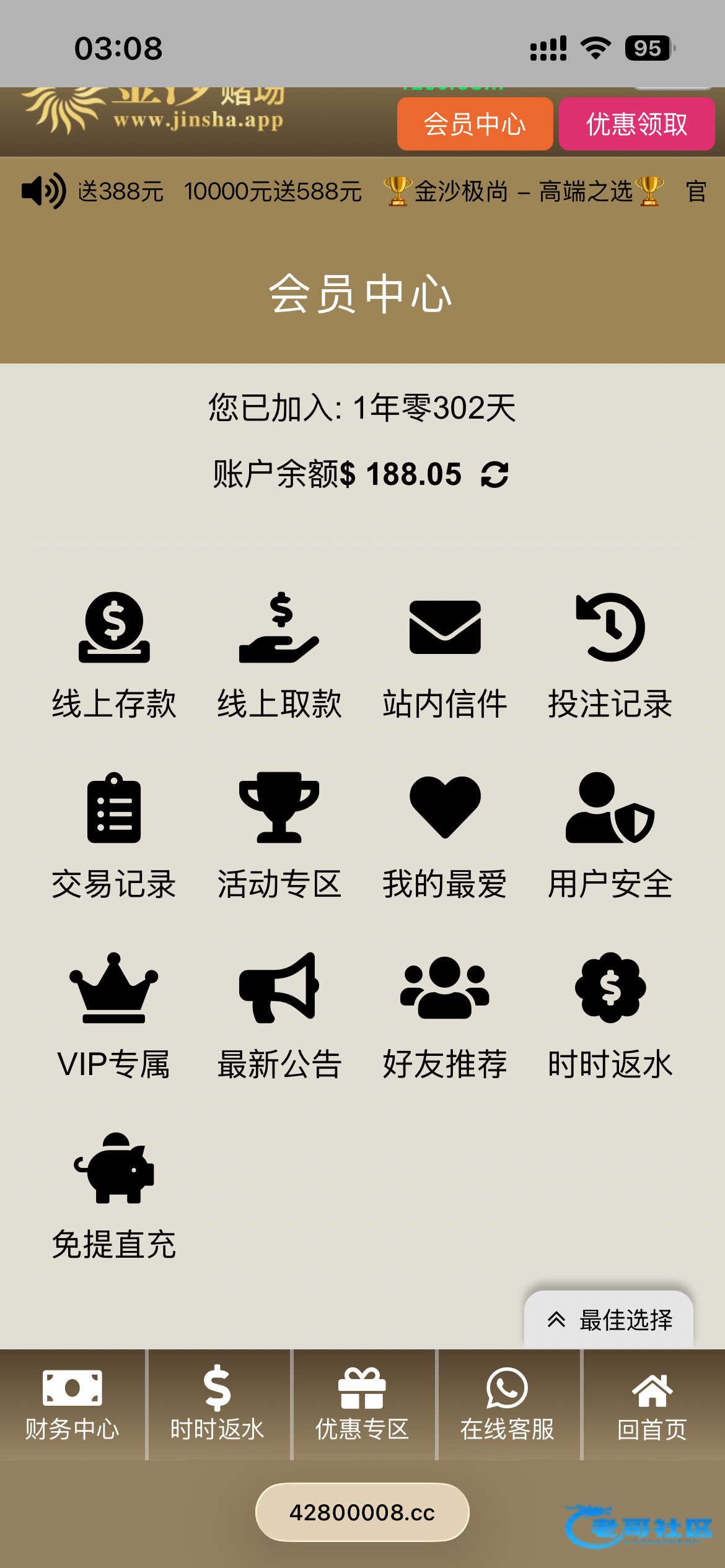 老哥你充了多少回归188彩金?