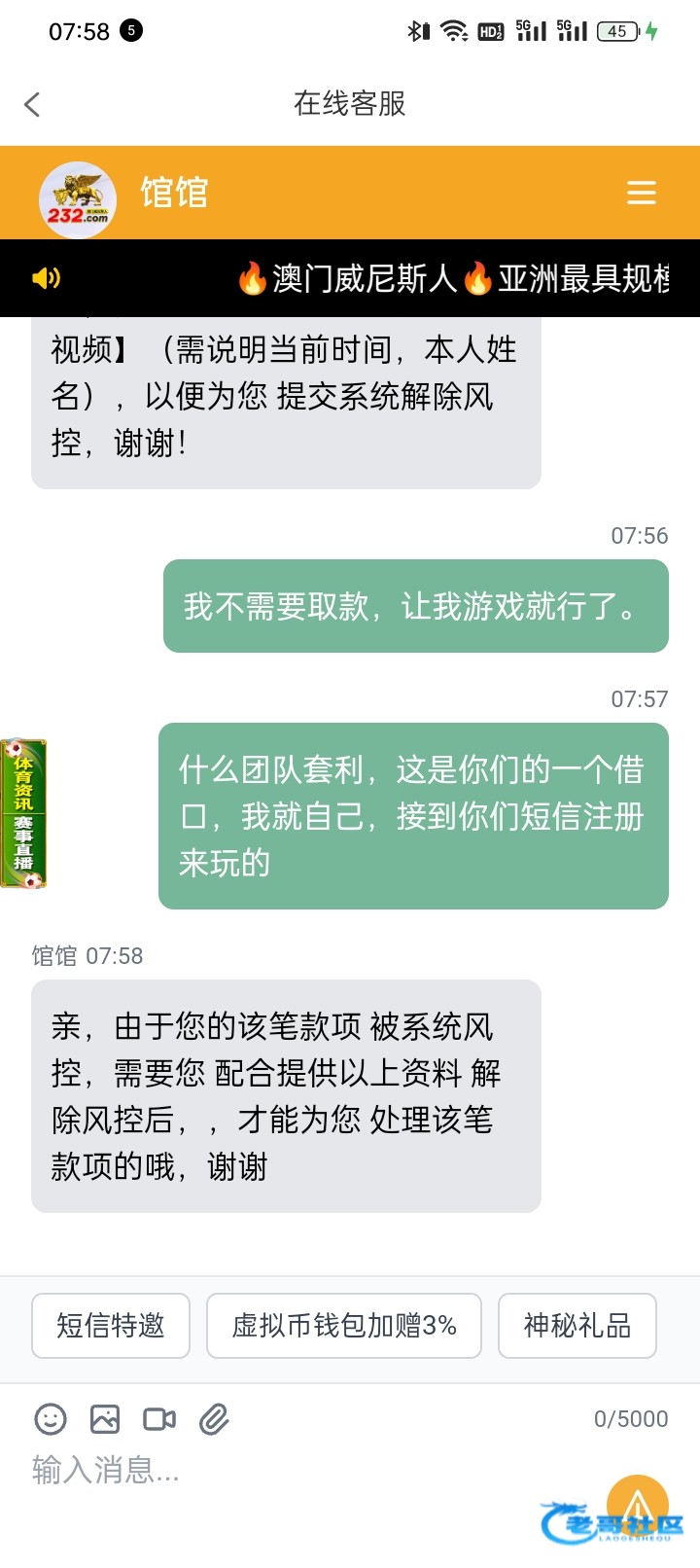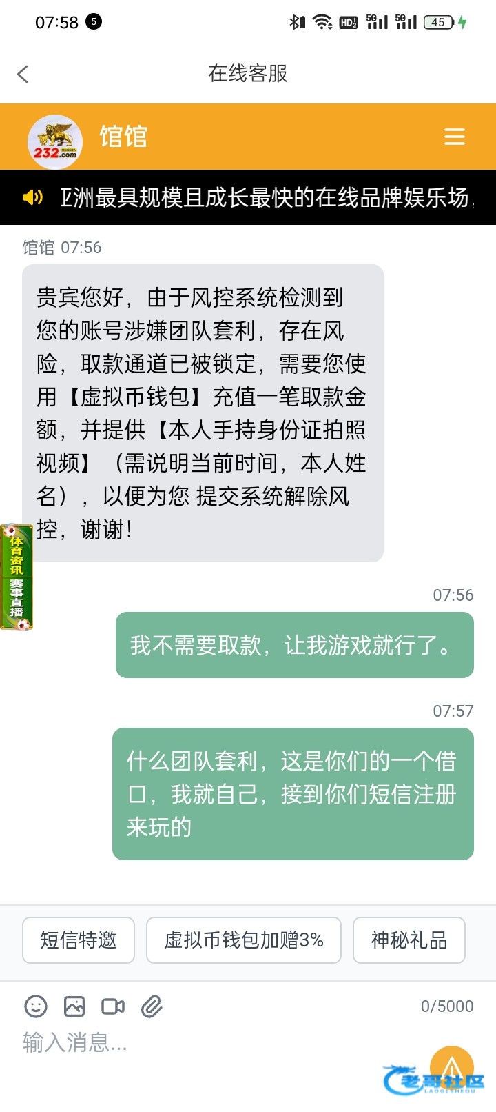 我之前在一个台子下分,也是说涉嫌套利,让我录视频,让我去ATM机录流水视频这些发给他,我去弄了之后也给我下了