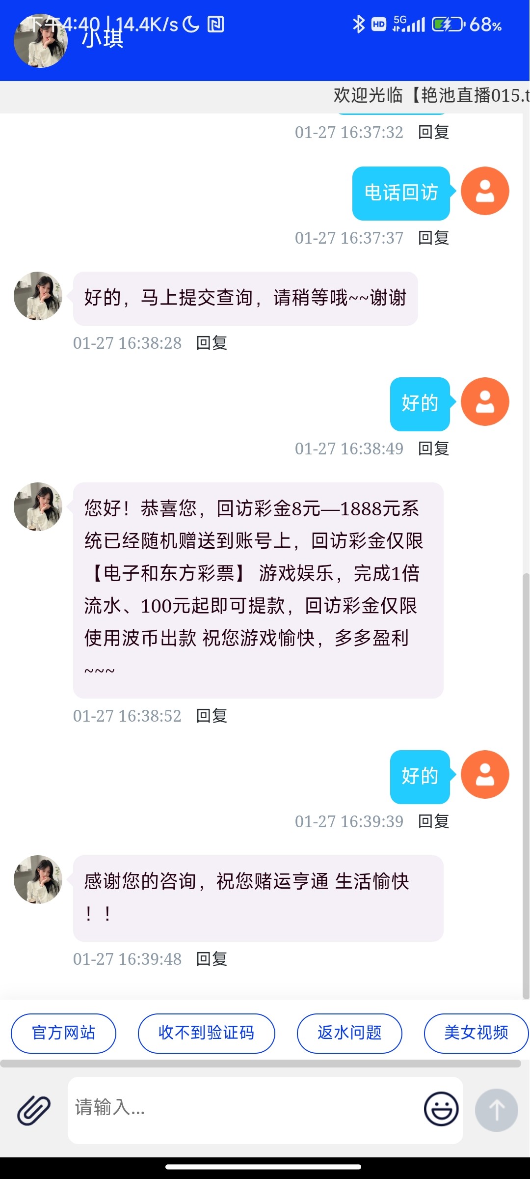 下次你们接到这种平台的电话回访,先让她不要挂电话,让她去客服那边登记一下回访彩金,然后你们再去问客服要