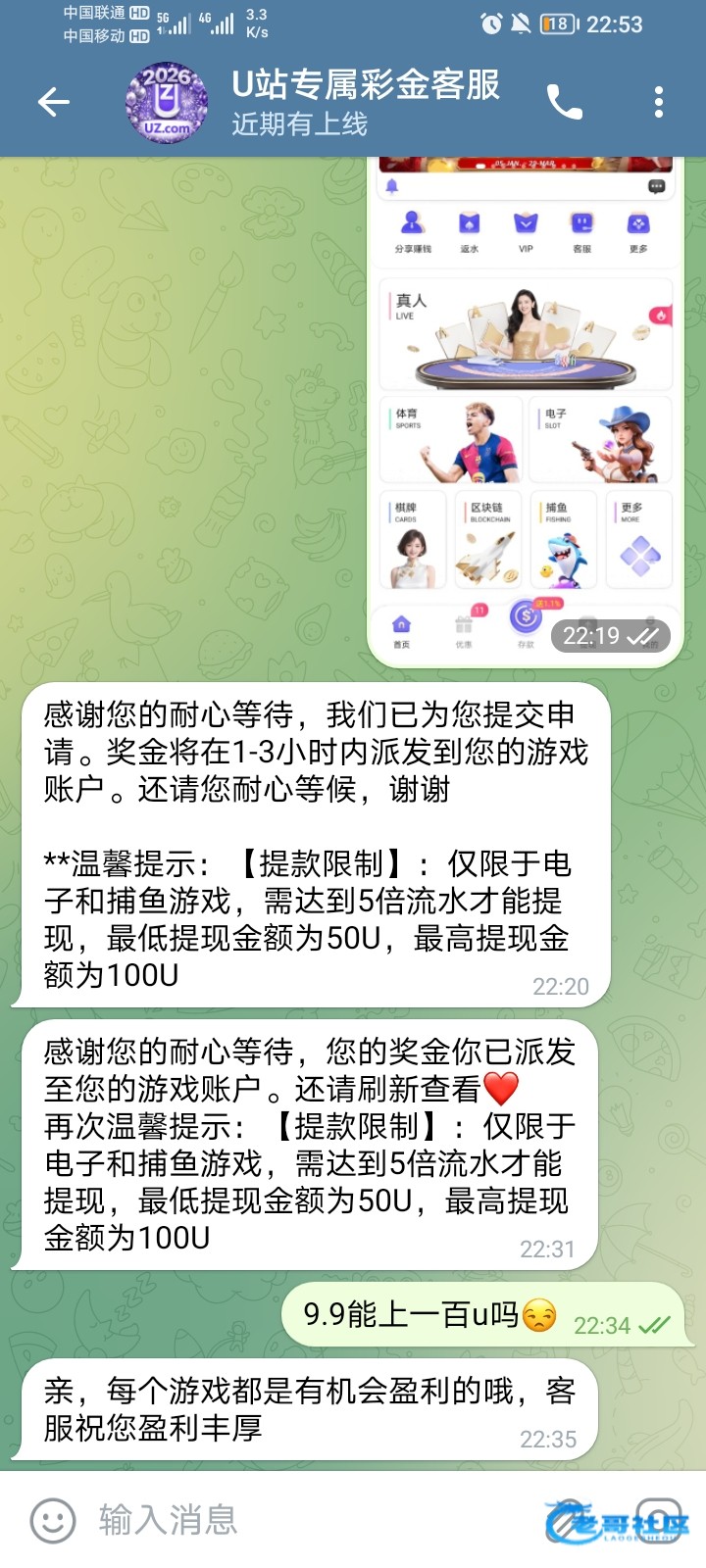 这个提现要冲5u然后最低提现50,你vip只能提22,死循环黑台
