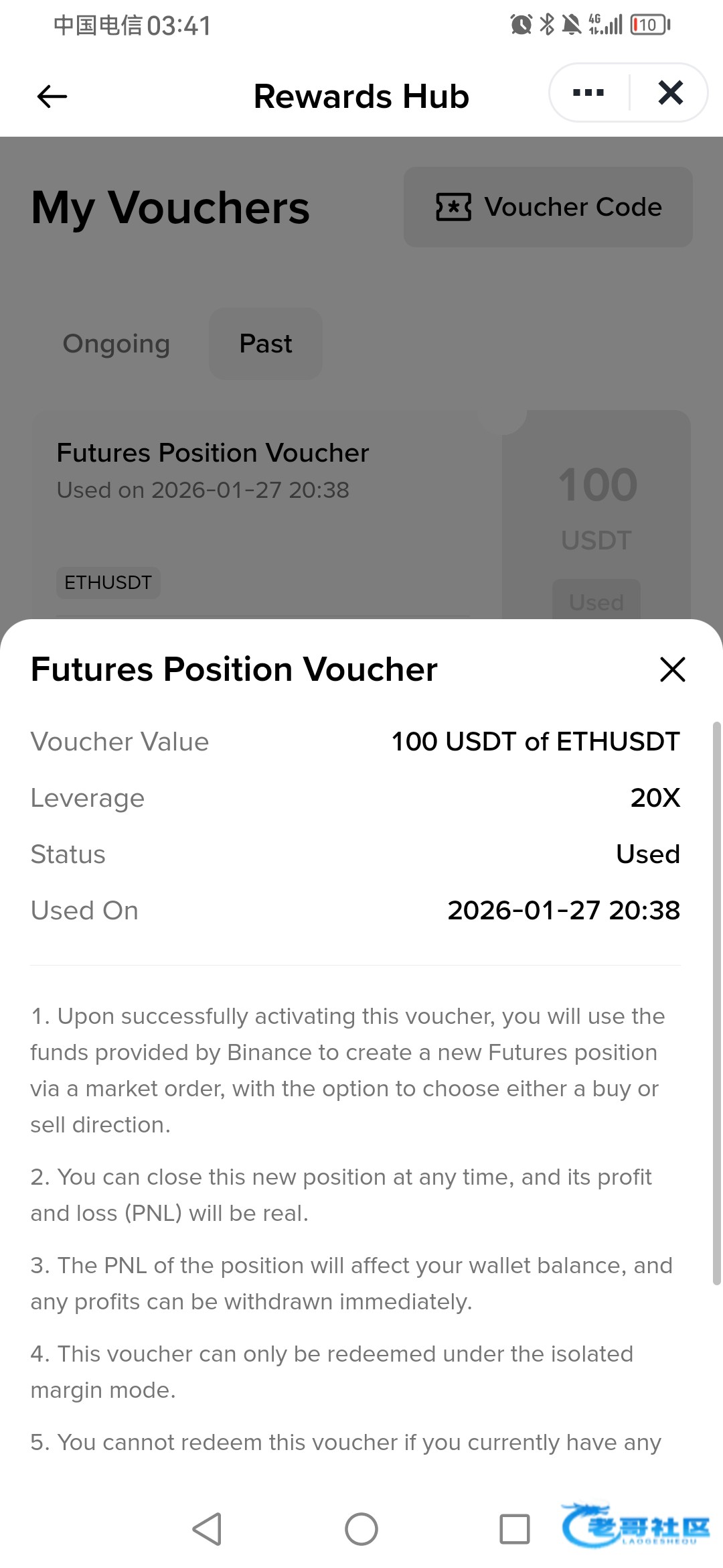 合约不会,邮箱显示送100u合约体验卷,币安app奖励中心领了100u去体验,过了会看合约亏了1.6u想着平仓换一下,结果就直接给了3u可以直接卖的