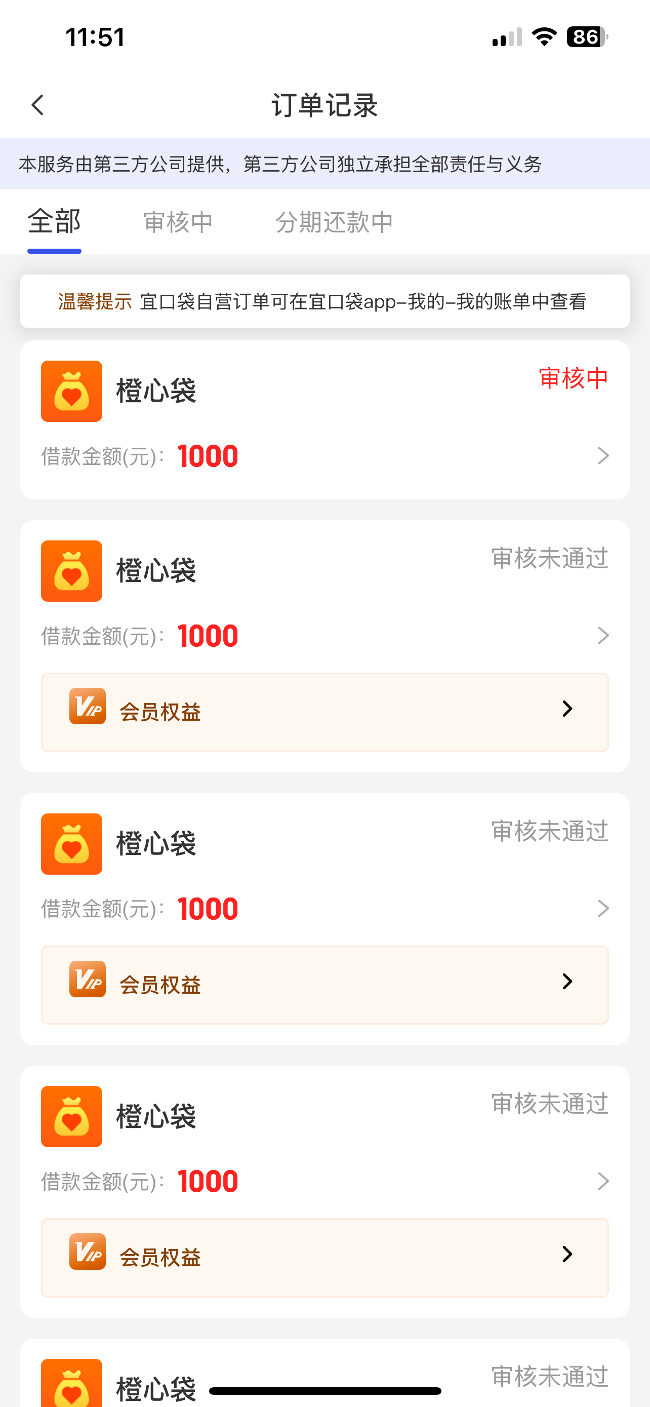 还款日我下了三笔,会员费都没扣成,扣了一期立减金