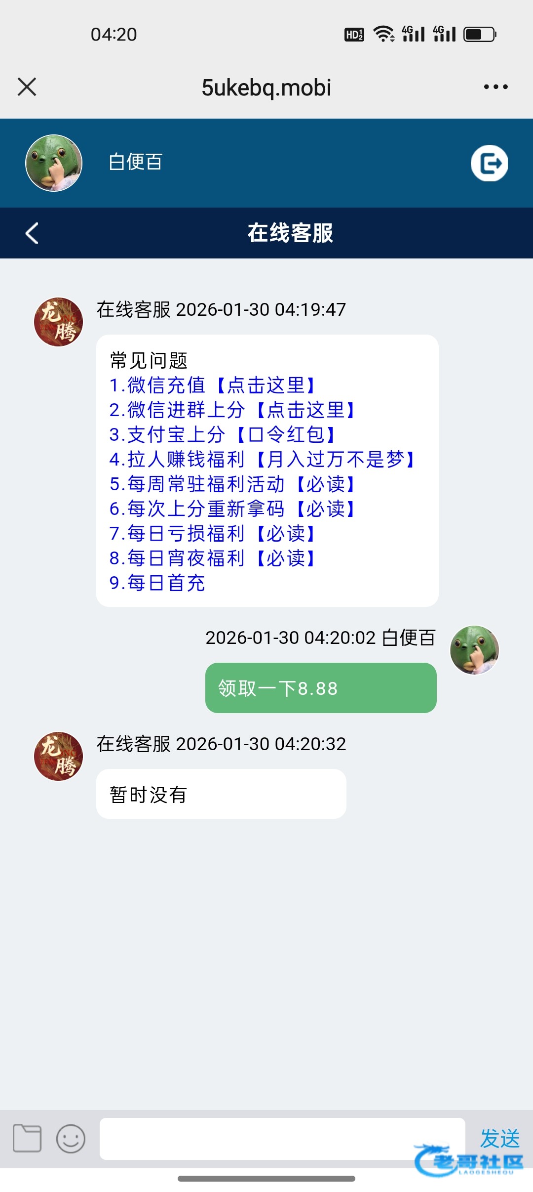 说真的不知道是不是运气差,还是来晚了,反正已经挂逼了,问他一晚上不回复,早上回复,打到128下12.8还要转发朋友圈一小时,没意思