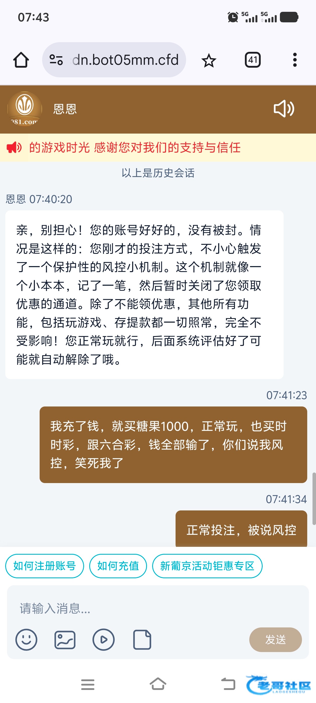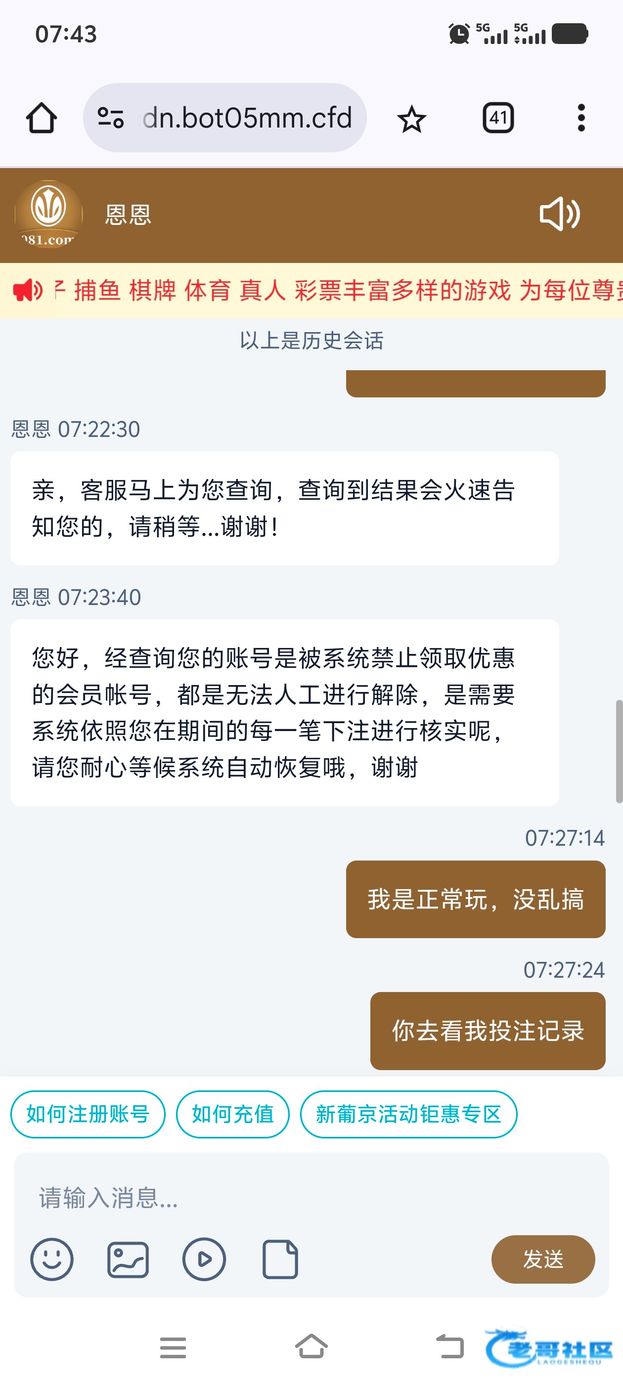 情况是这样,这平台我玩到现在2年了,已经vip5了,到目前应该输了20几万,平常我就买时时彩,跟六叔,都是正常玩,出款也都是秒到,基本每天的投注隔天都能领几十反水彩金,钱也全输,早上4点多账户是正常,睡醒了账户就被限制了,无语了,优惠跟等级全被封了,
