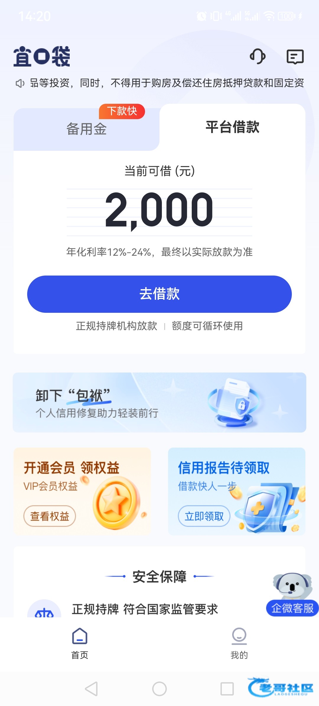 宜口袋有额度,审核失败不能借,请问宜口袋怎么开通会员提额,也没有开通会员按钮。